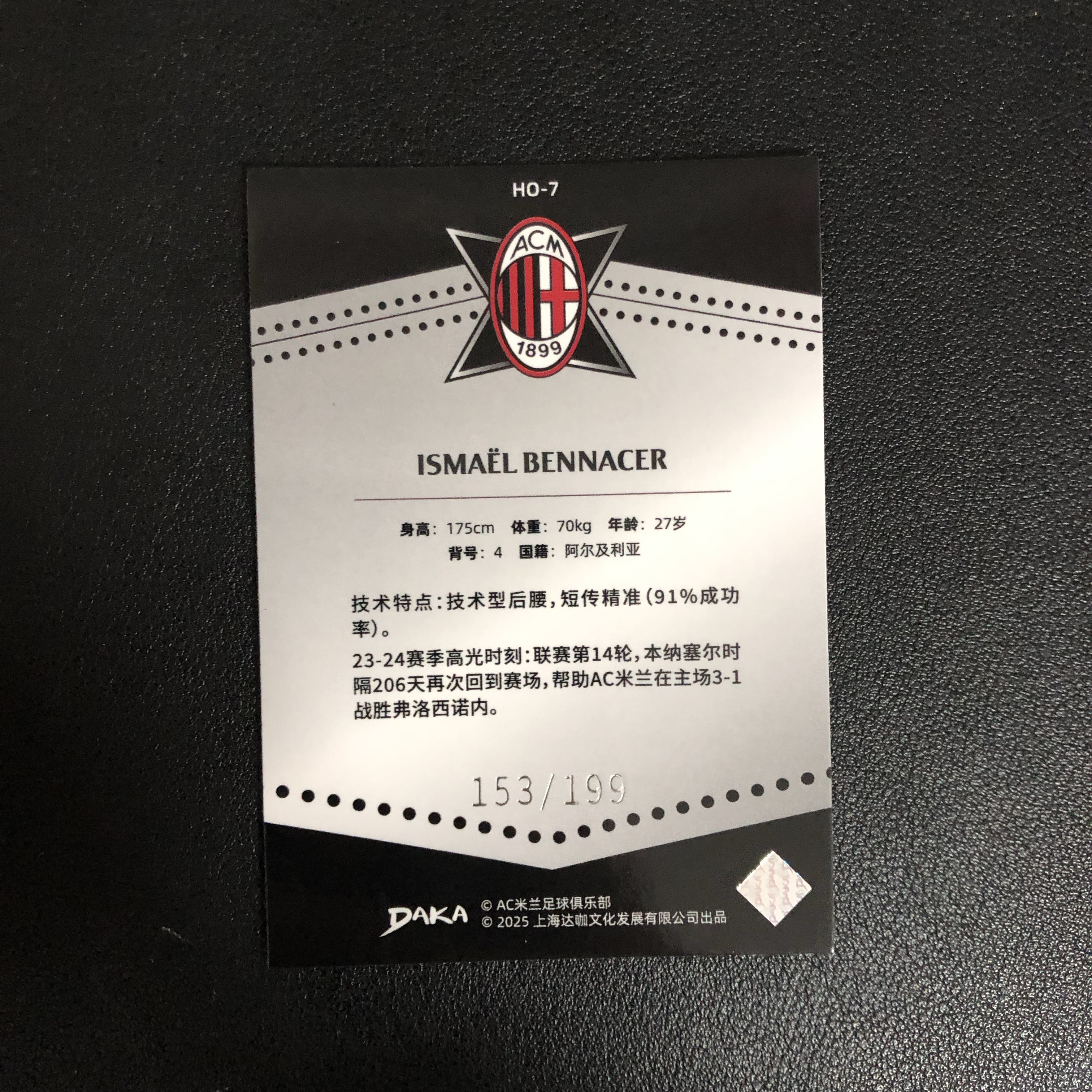 2025 DAKA AC米兰队盒 Ismael Bennacer 达咖 本纳赛尔 153/199编 银平行 意大利 最新高端系列 实卡精美 收藏必备(rt)
