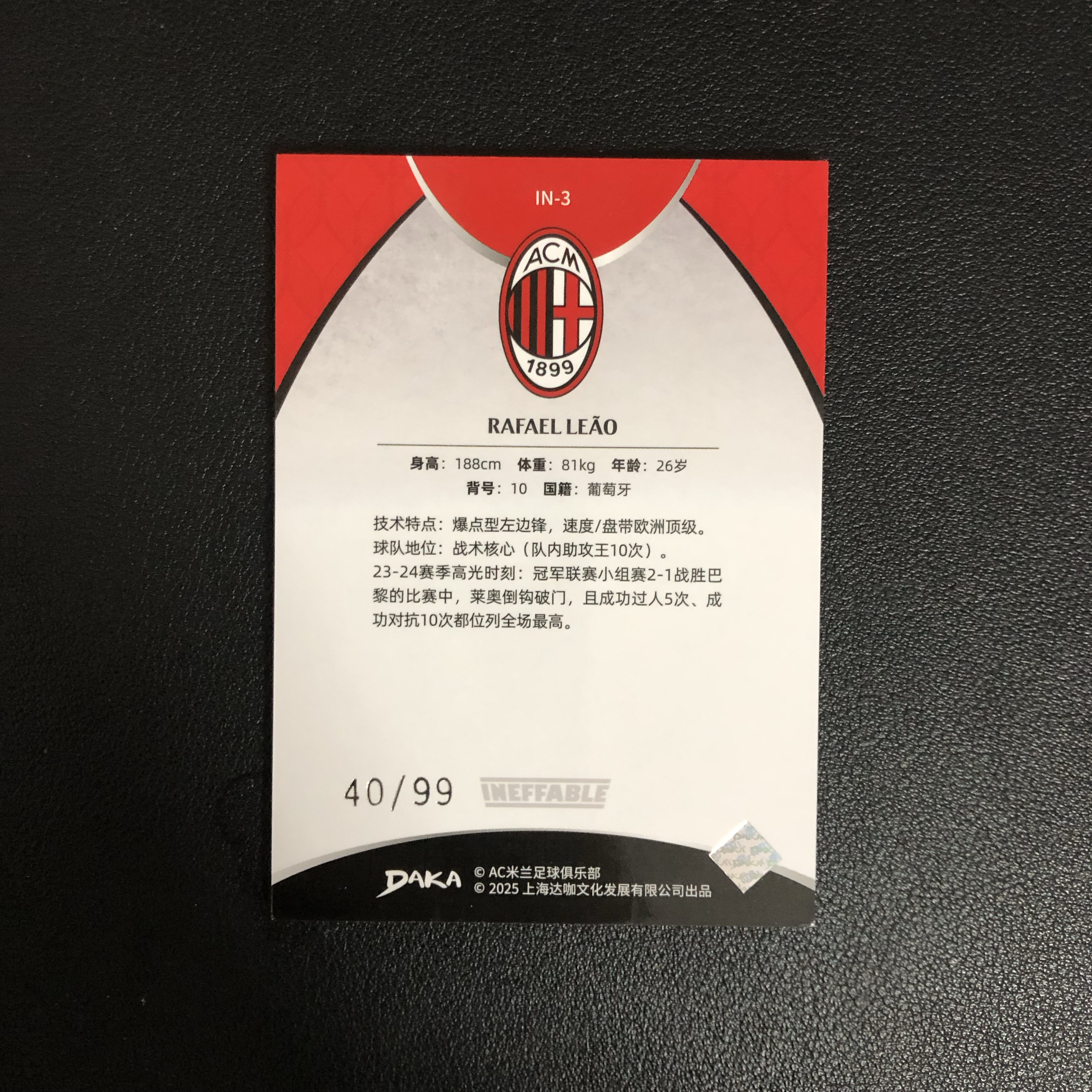 2025 DAKA INEFFABLE AC MILAN Rafael Leao 达咖 拉斐尔 莱奥 AC米兰 40/99编 厚卡 特卡 折射 最新高端系列 卡品如图 收藏 凑套必备(rt)