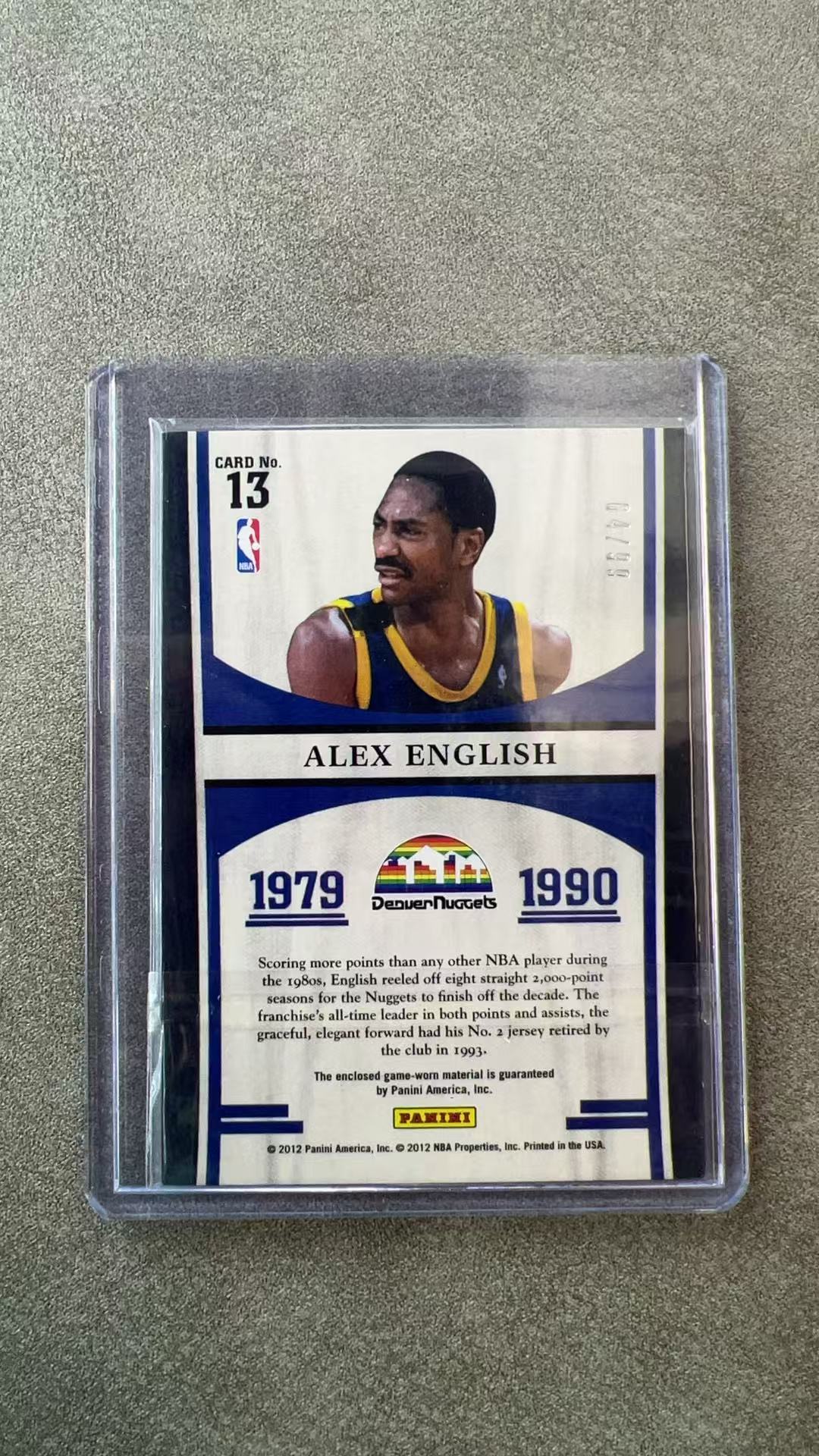 6554【330球星卡实体店代卖】2012 帕尼尼 Limited 英格利什 Alex English 掘金 传奇 64/99编 球衣实物 落场 仅顺丰寄付(UK23)