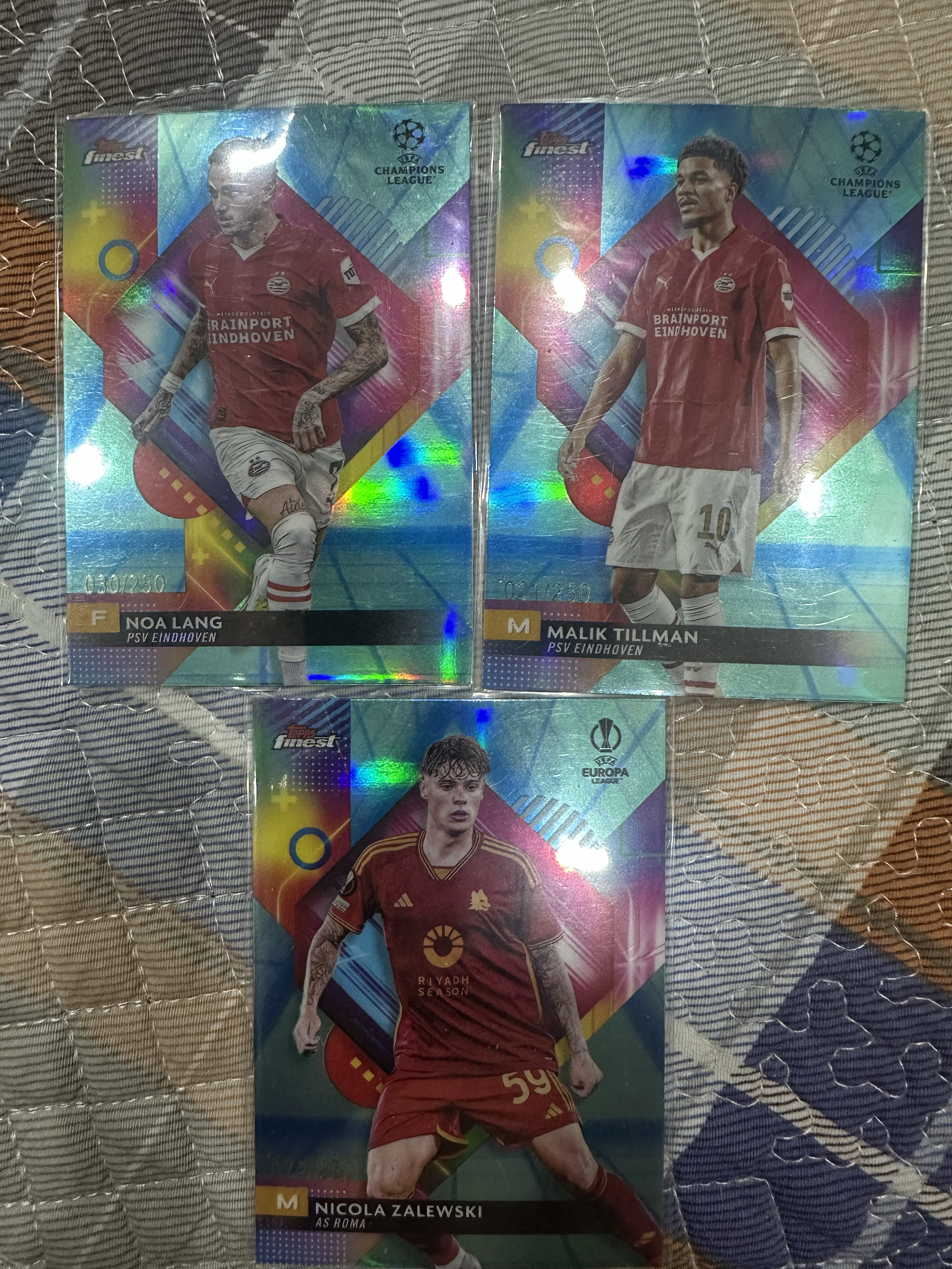 2024 Topps Finest Malik Tillman 欧冠 finest 诺阿朗 蒂尔曼 扎莱夫斯基 蓝折 250编 极具收藏价值 未来必涨 三张打包 lot 亚马尔