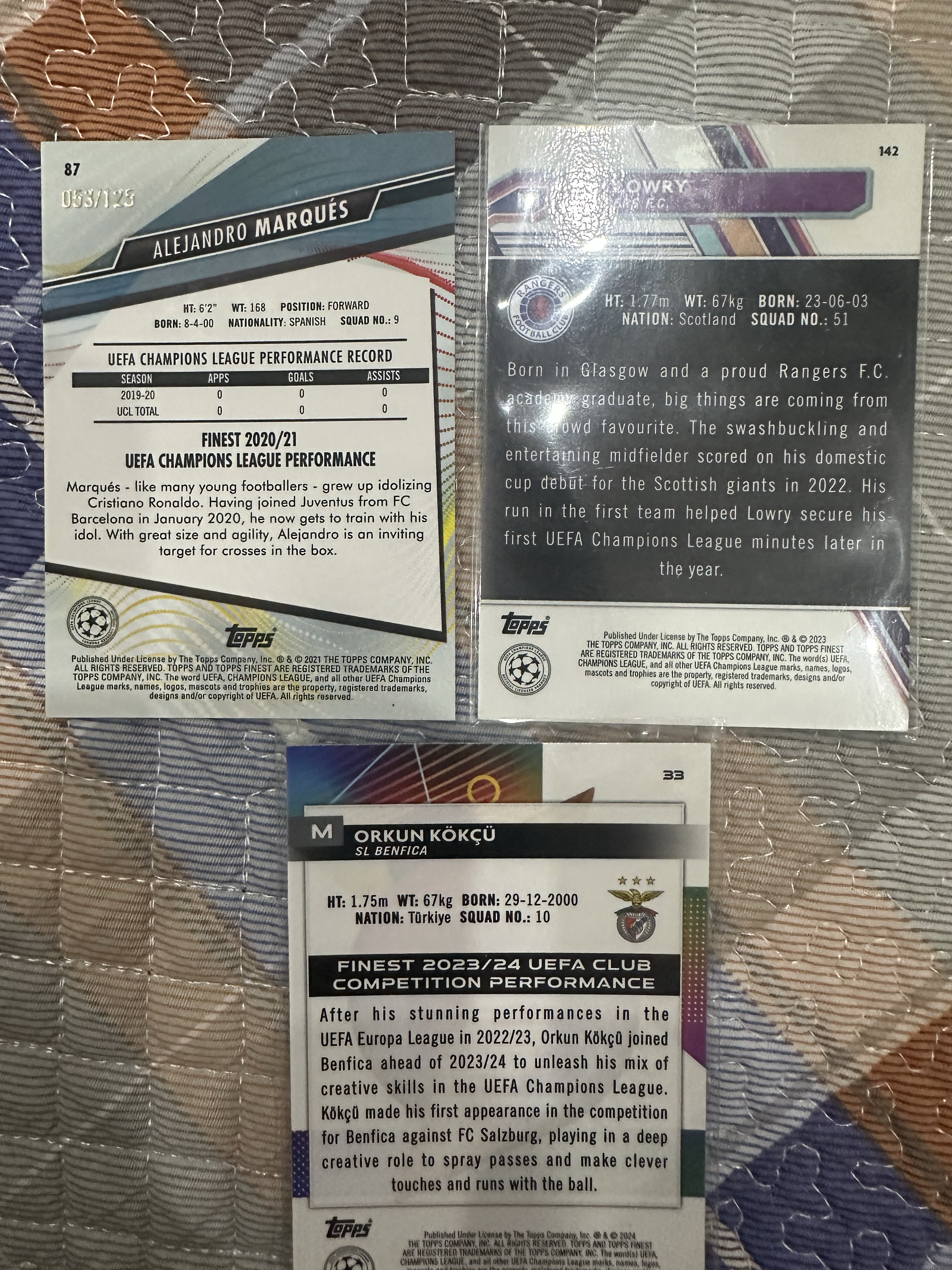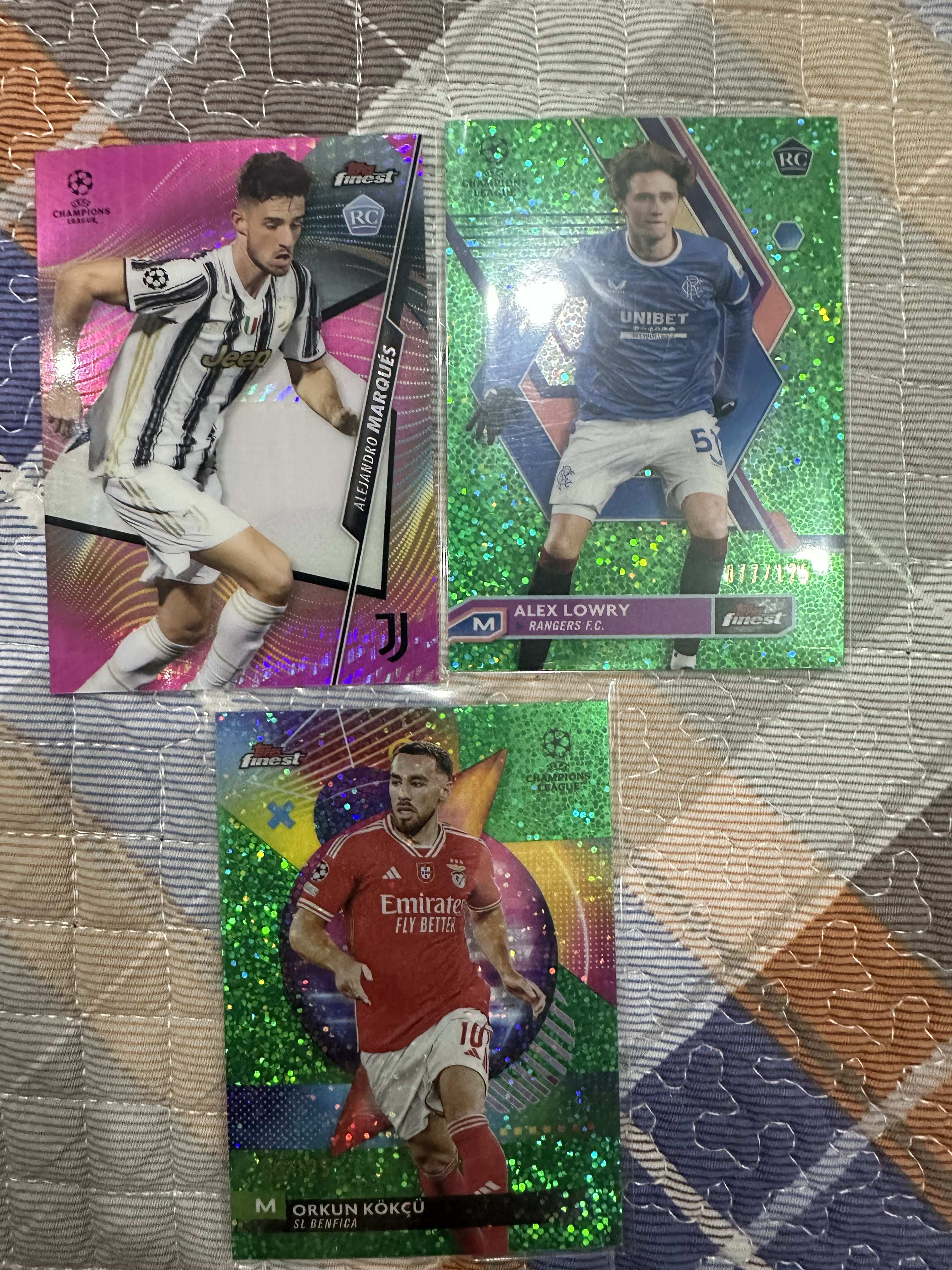 2024 Topps Finest Orkun Kökcü 欧冠 finest 马克思 尤文 rc 125编 柯克曲 劳里 125编 极具收藏价值 未来必涨 粉折 棱镜 绿碎点 lot 三张打包
