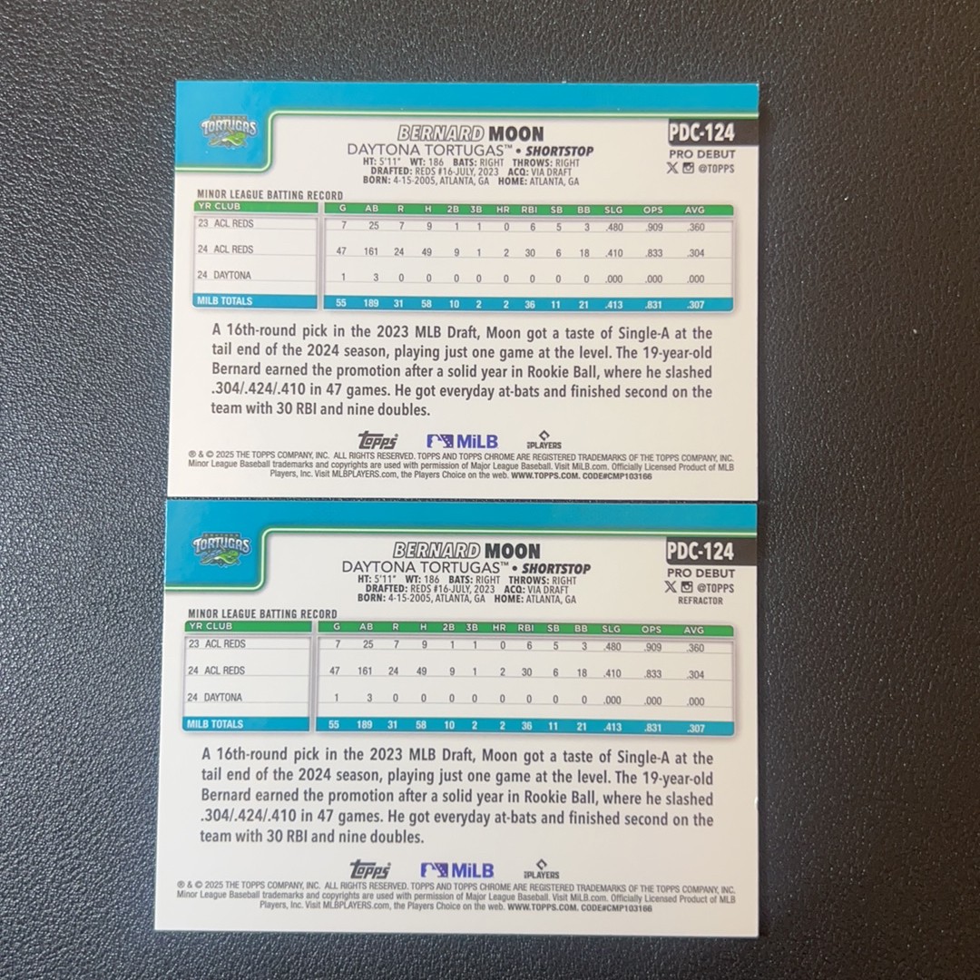 2025 Topps Chrome BERNARD MOON 棒球 pro debut 伯纳德 穆恩 辛辛那提红人 99编 199编 银折 绿波纹折 2张打包不保卡品-SY5332