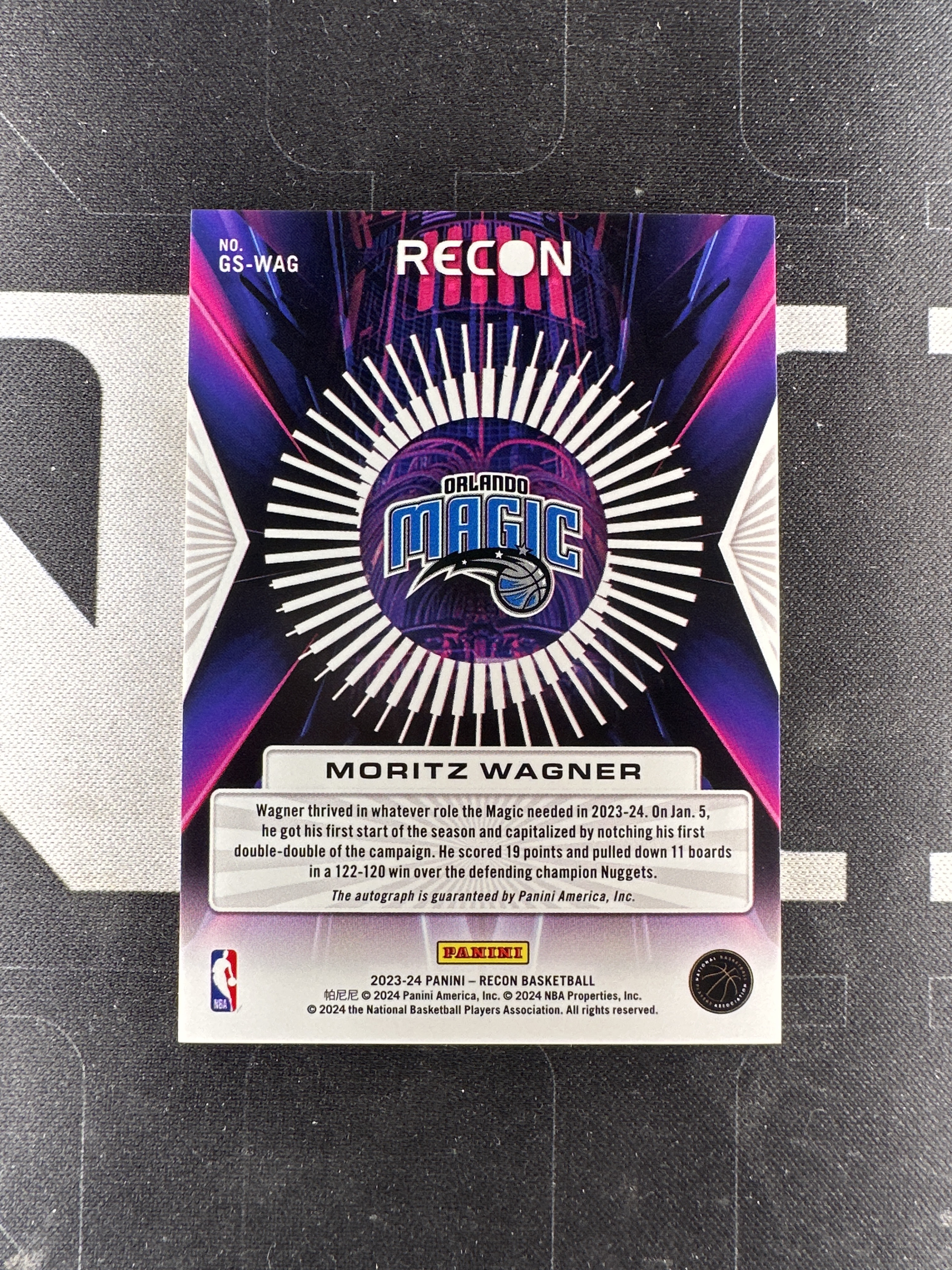 2023-24 Panini Recon Moritz Wagner 【星卡岛卡社】23-24 RECON 魔术 莫里茨瓦格纳 贴签 07/99编 卡品完美 收藏必备(老王)