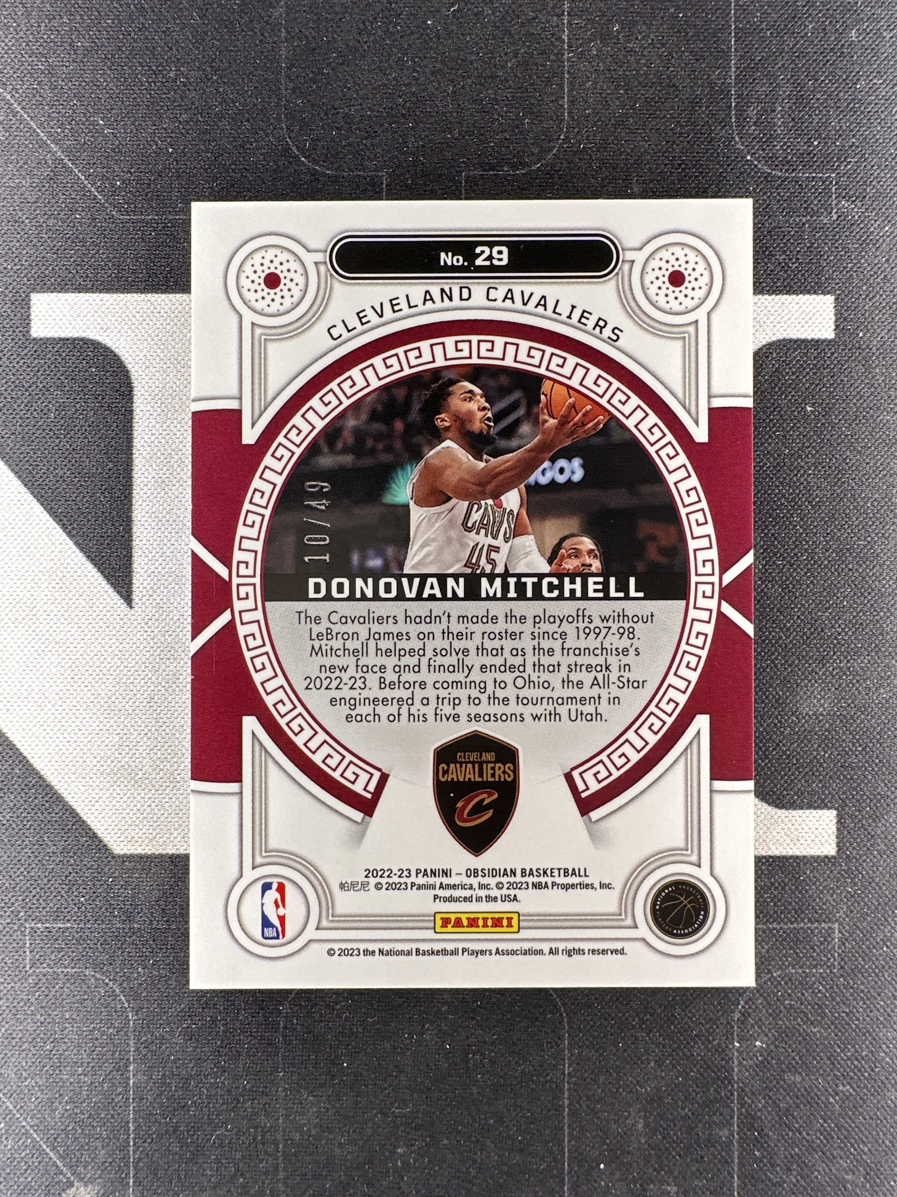 2022-23 Panini Obsidian Donovan Mitchell 【星卡岛卡社】22-23 黑曜石 骑士 多诺万米切尔 紫折轨道特卡 10/49编 卡品完美 收藏必备(老王)