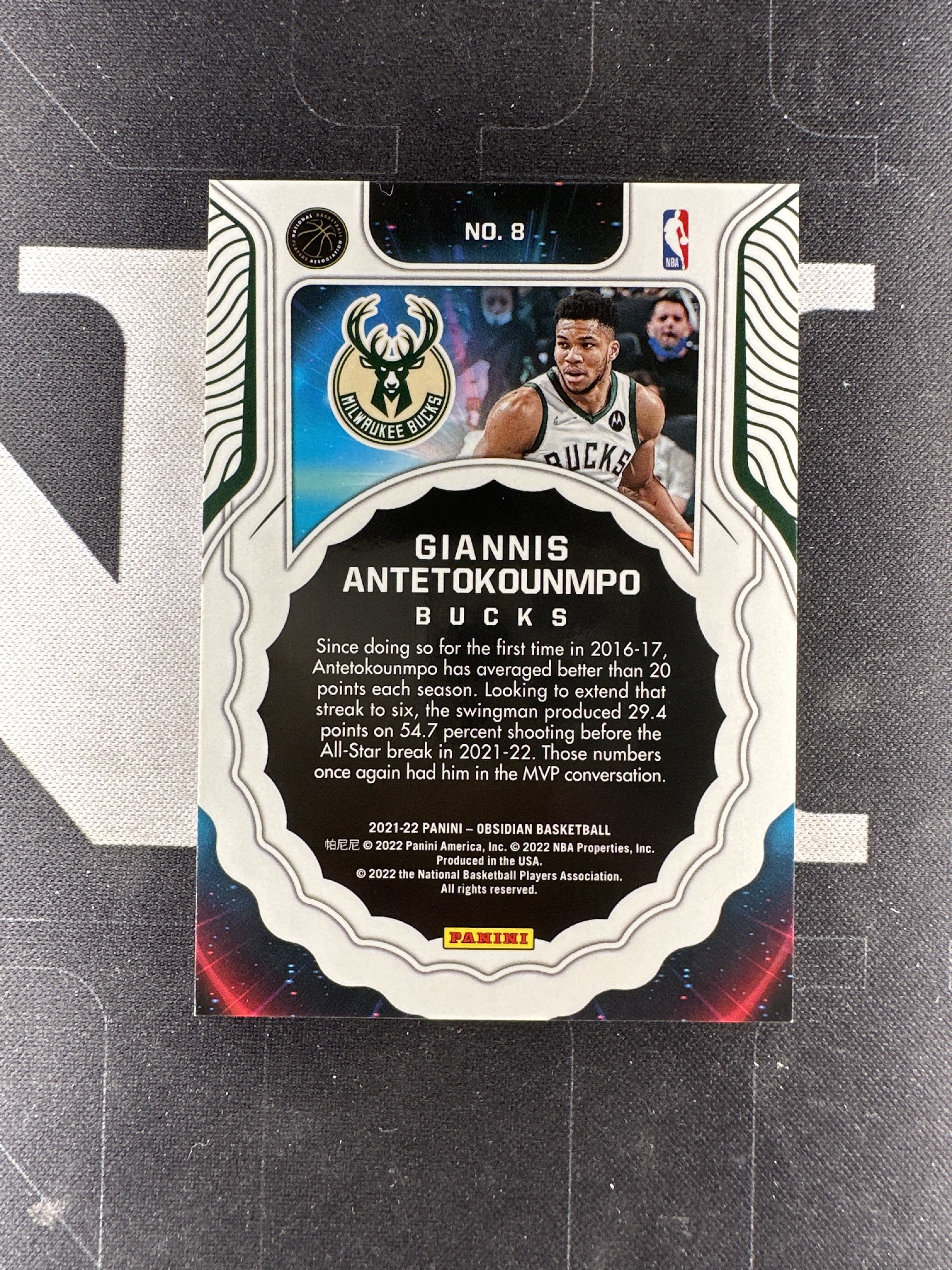 2021-22 Panini Obsidian Giannis Antetokounmpo 【星卡岛卡社】21-22 黑曜石 雄鹿 字母哥 红折超新星 卡品完美 收藏必备(老王)