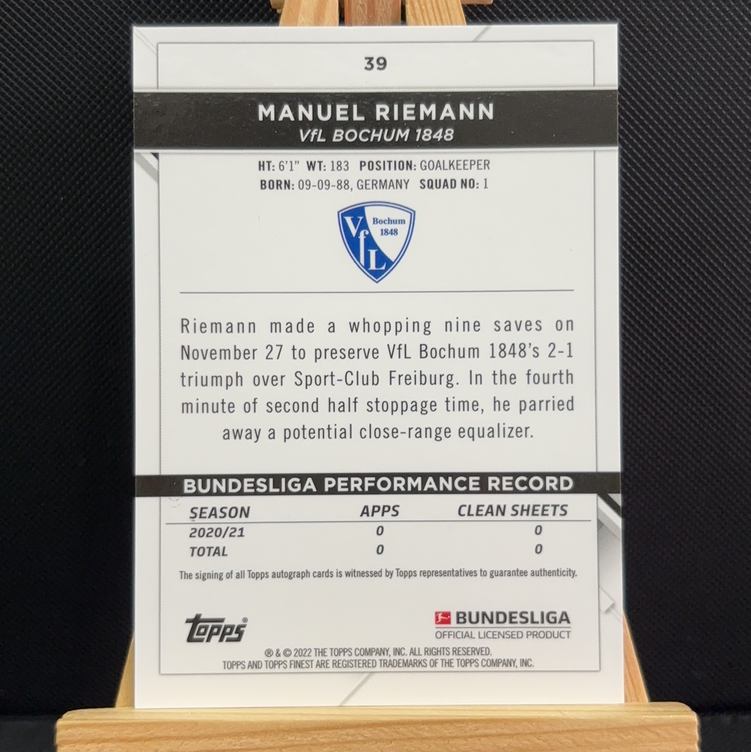 2022 Topps Finest Manuel Riemann 曼努埃尔 里曼 签字 银折 折射 波鸿 德国【爪卡收卡】