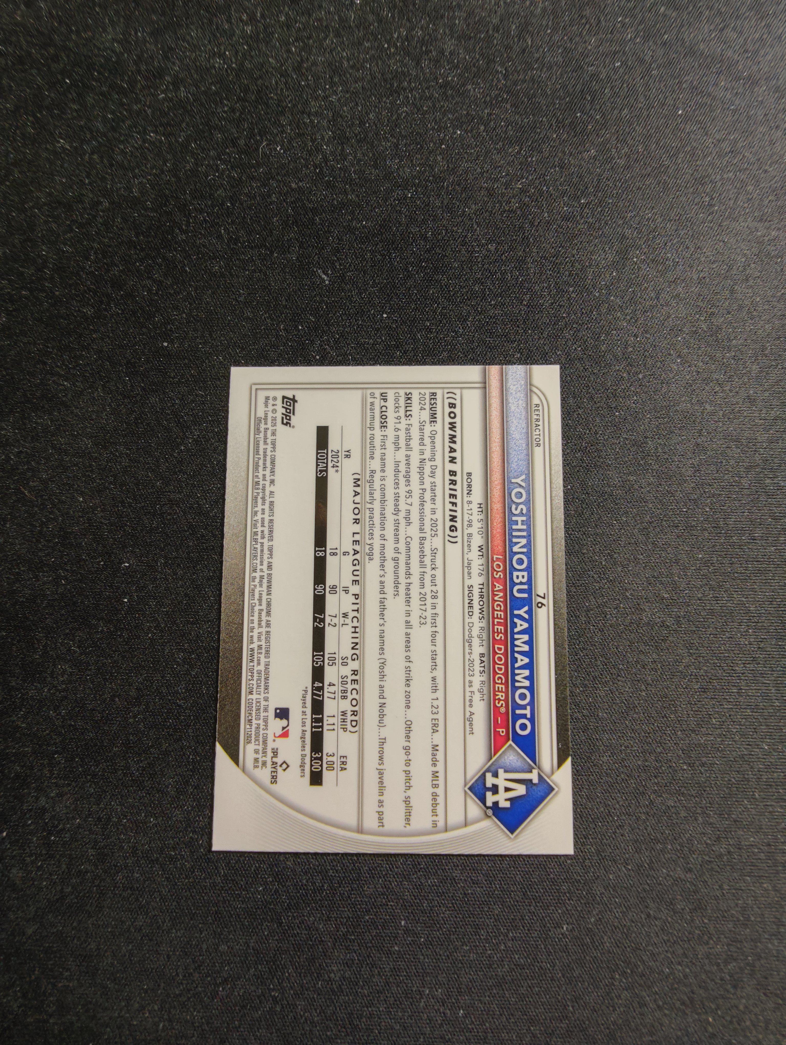 2024 Panini 小光头 不累计 棒球 TOPPS BOWMAN CHROME 499编 YOSHINOBU YAMAMOTO 山本 菠萝