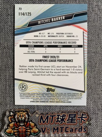 MT拍卖,MT球星卡代卖,有任何问题联系站内私信,卡品如图,目前成交过两万多标没有发生问题,普快中通全国15。如遇问题我将尽全力配合,建议顺丰。拍卖结束后3天内付款,否则投诉,望珍惜自己的账号,十分感谢!代拍代卖以及各种需求咨询客服微信:MTCards,店主玩卡13年开店5年,可以尽力为卡片提供最专业的服务!本拍卖所有上架的卡片皆为代卖,不接受单独购买。标题结尾小括号内的文字为代卖委托人即当前卡片所有者。MT球星卡提供代卖服务。付款之后3天之内发货,如遇特殊情况我会提前说明,急件勿拍。