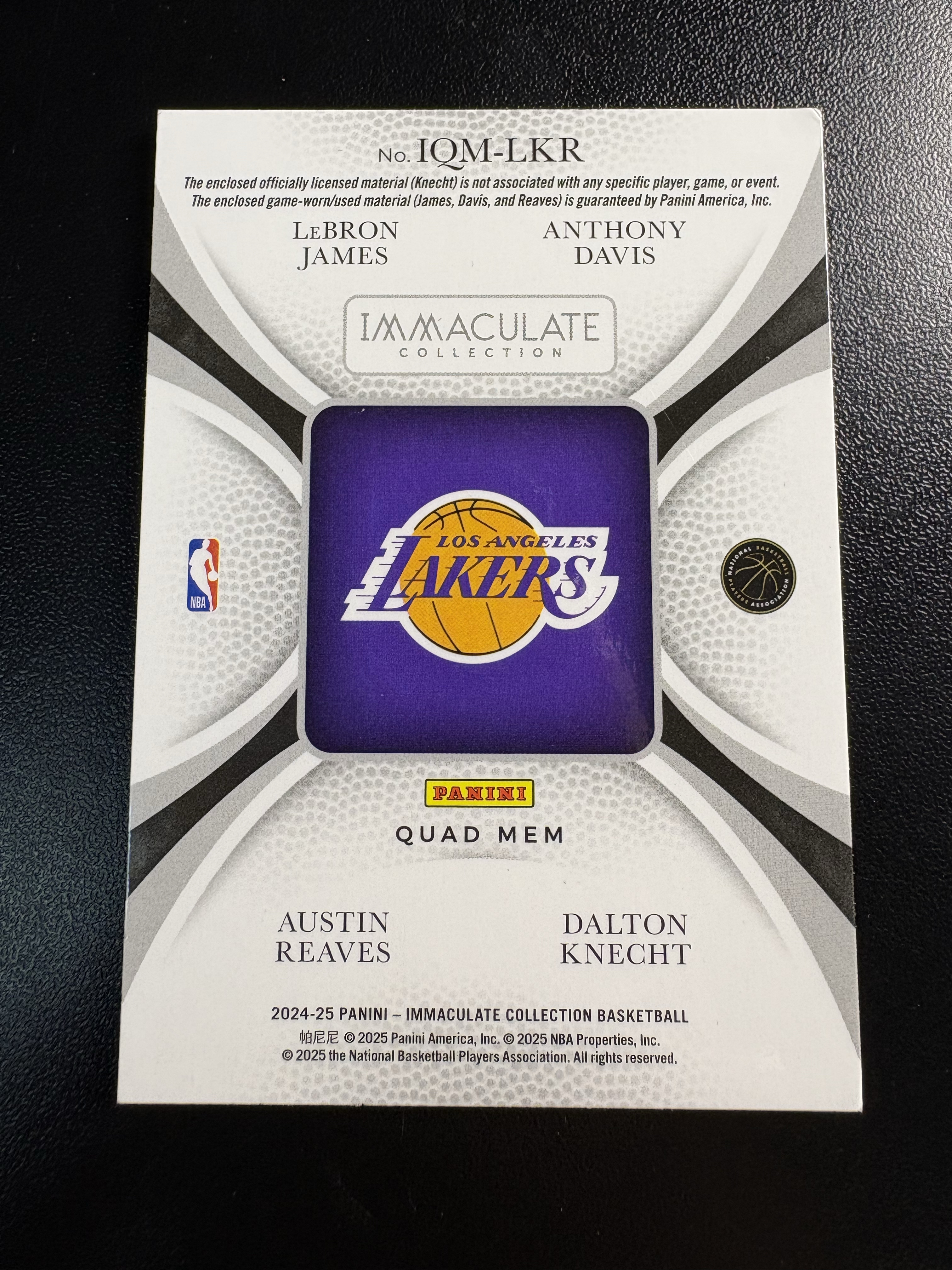 2024-25 Panini Immaculate LeBron James 【拉姆代卖】 99编 勒布朗 詹姆斯 浓眉 里弗斯 克内克特 亲穿球衣物料 四窗 四人 湖人队 卡品如图 【旭弟2】