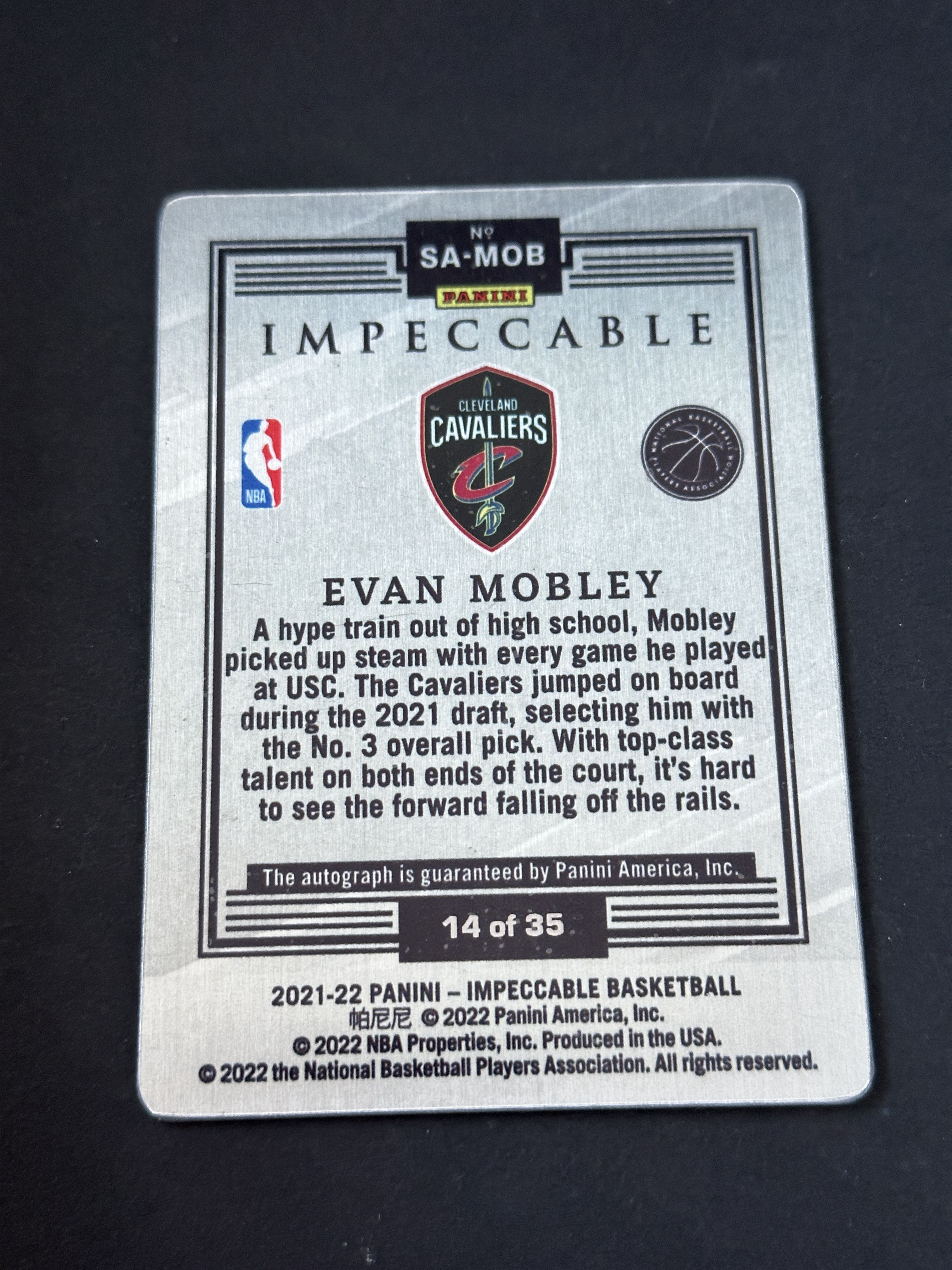 2021-22 Panini Impeccable Evan Mobley RC 新秀 骑士 埃文 莫布利 新秀 RC 紫平行 35编 签字 卡签 小真金 铁板签 攻防一体潜力巨星 收藏必备 卡品如图