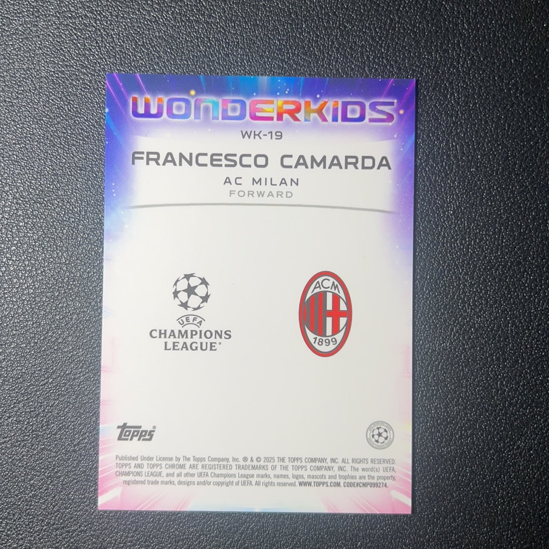 2024-25 Topps Chrome Francesco Camarda 欧冠TC 日版 卡马尔达 AC米兰 50编 低编 神奇小妖特卡 金mojo折 轻印-SY1053