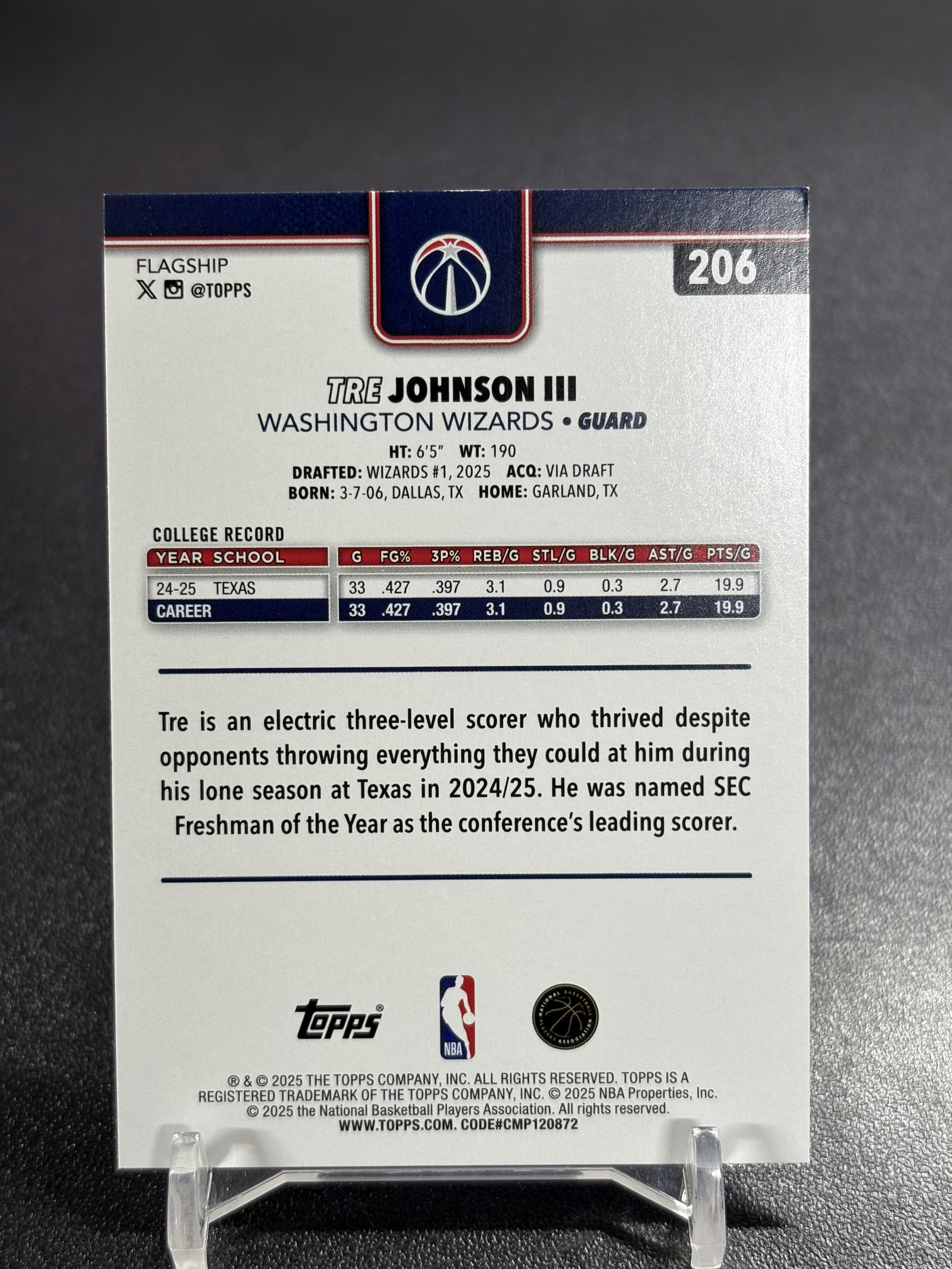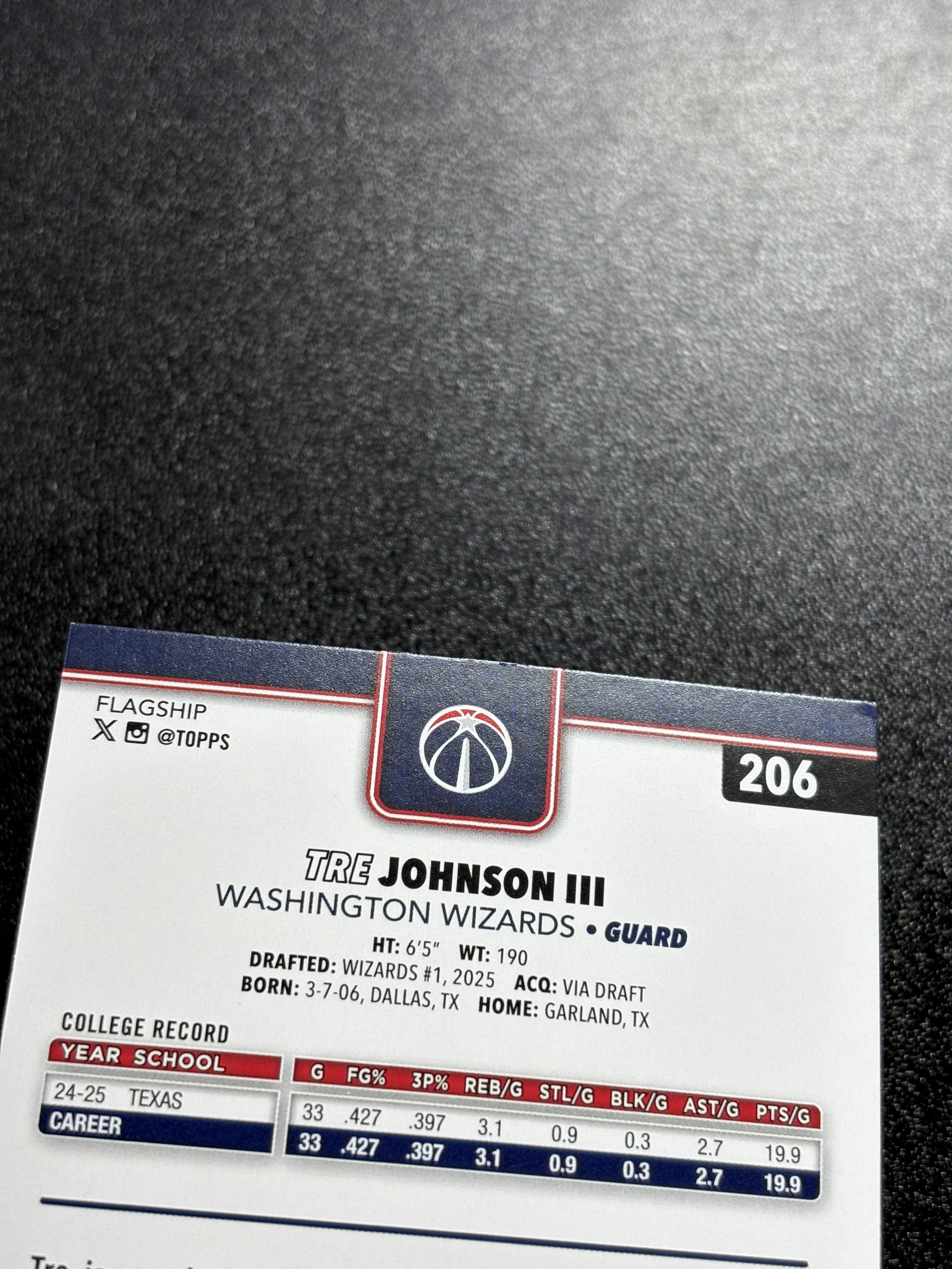 【浩行拍卖 截标预付82%】2025 topps flagship tre johnson III 旗舰 奇才 特雷 约翰逊 三世 rc 新秀 银折 折射 瑕疵看图 专收必备「Roy456」1121S06鍾