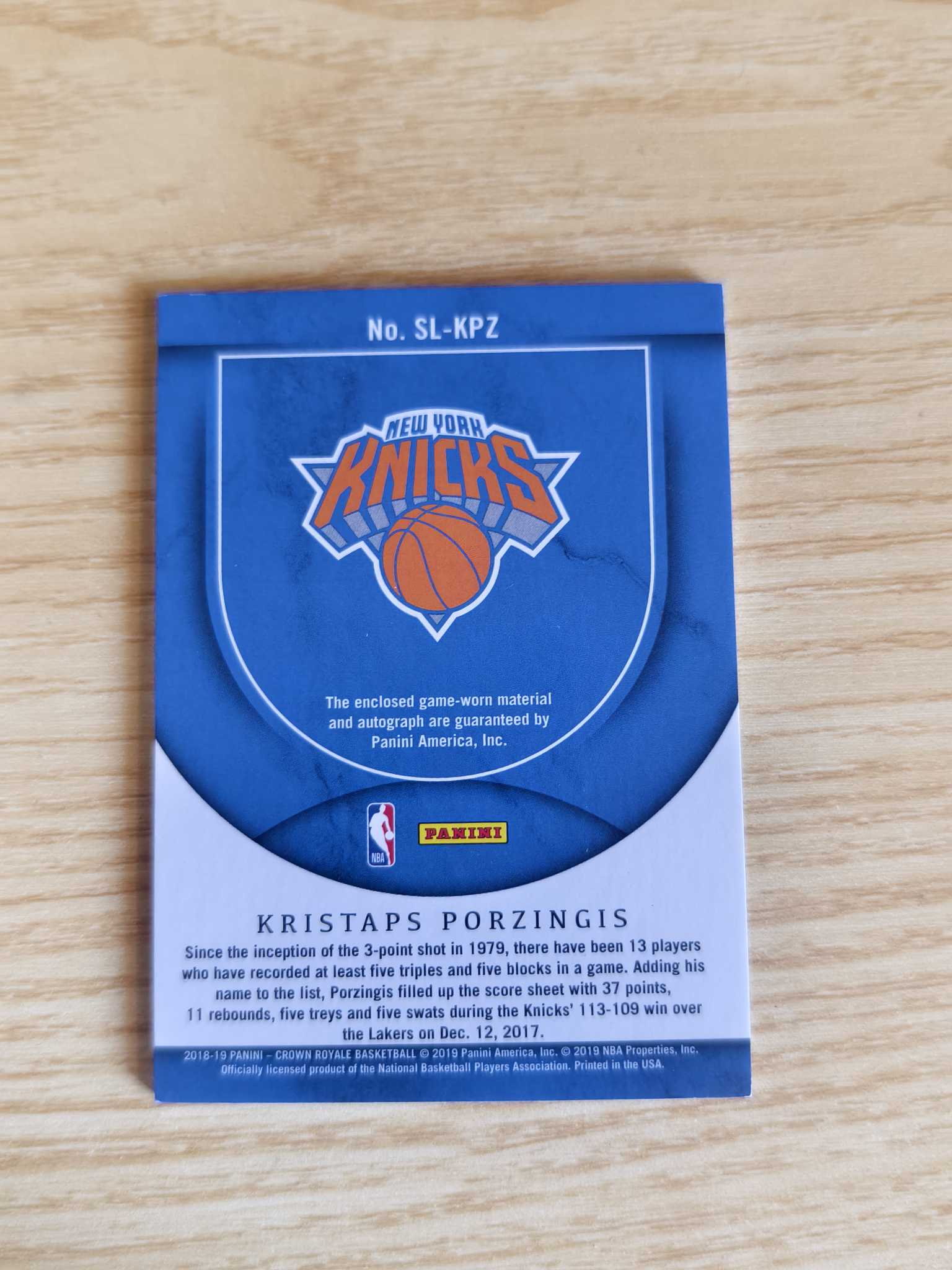 2018-19 Panini Crown Royale Kristaps Porzingis 皇冠 尼克斯 波尔津吉斯 剪影 21/99编 卡签 球衣 收藏必备