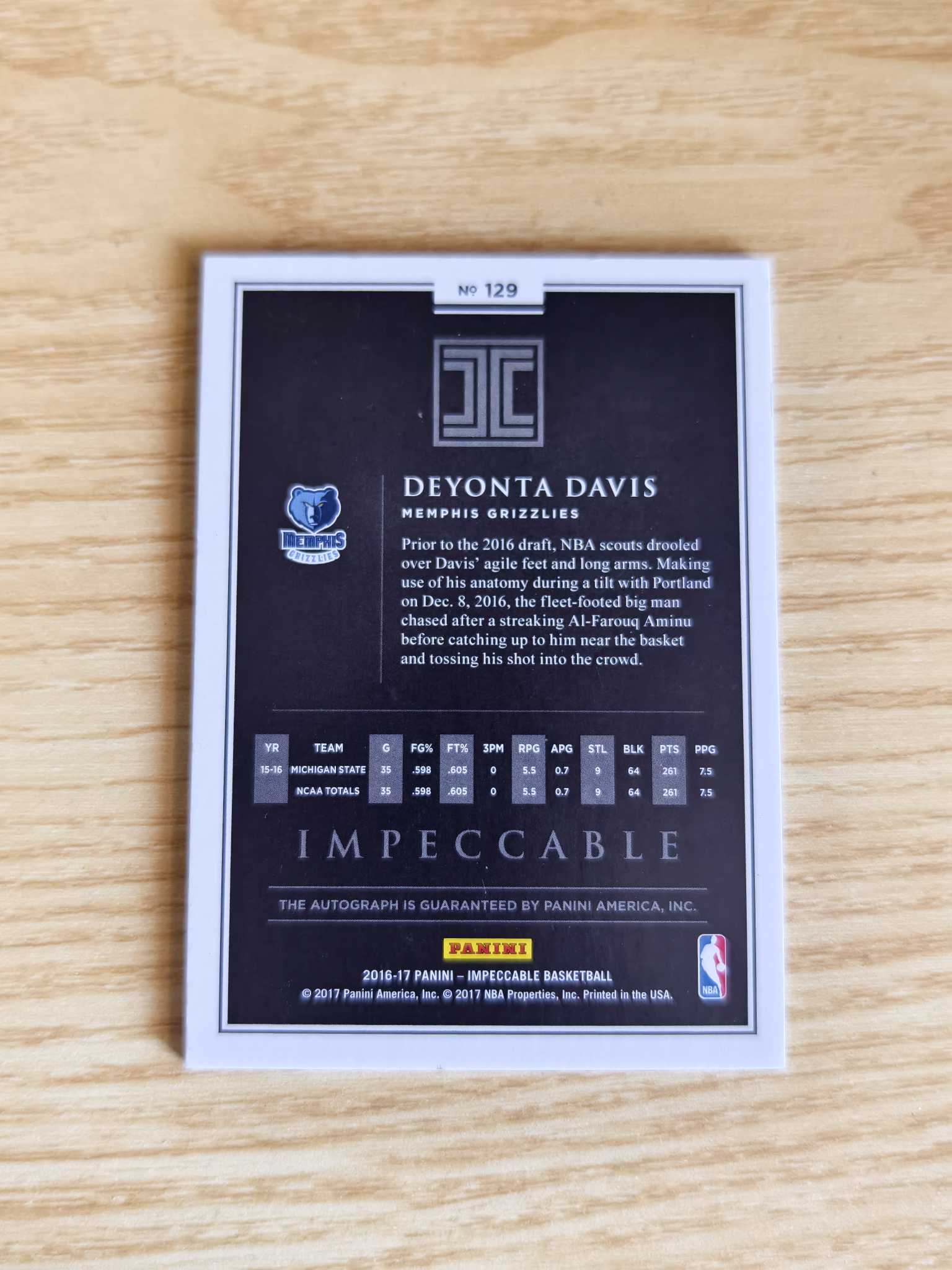 2016-17 小真金 灰熊队 Deyonta Davis 德扬泰 戴维斯 99编 签字 卡签 黑笔签 新秀 rc 专收必备