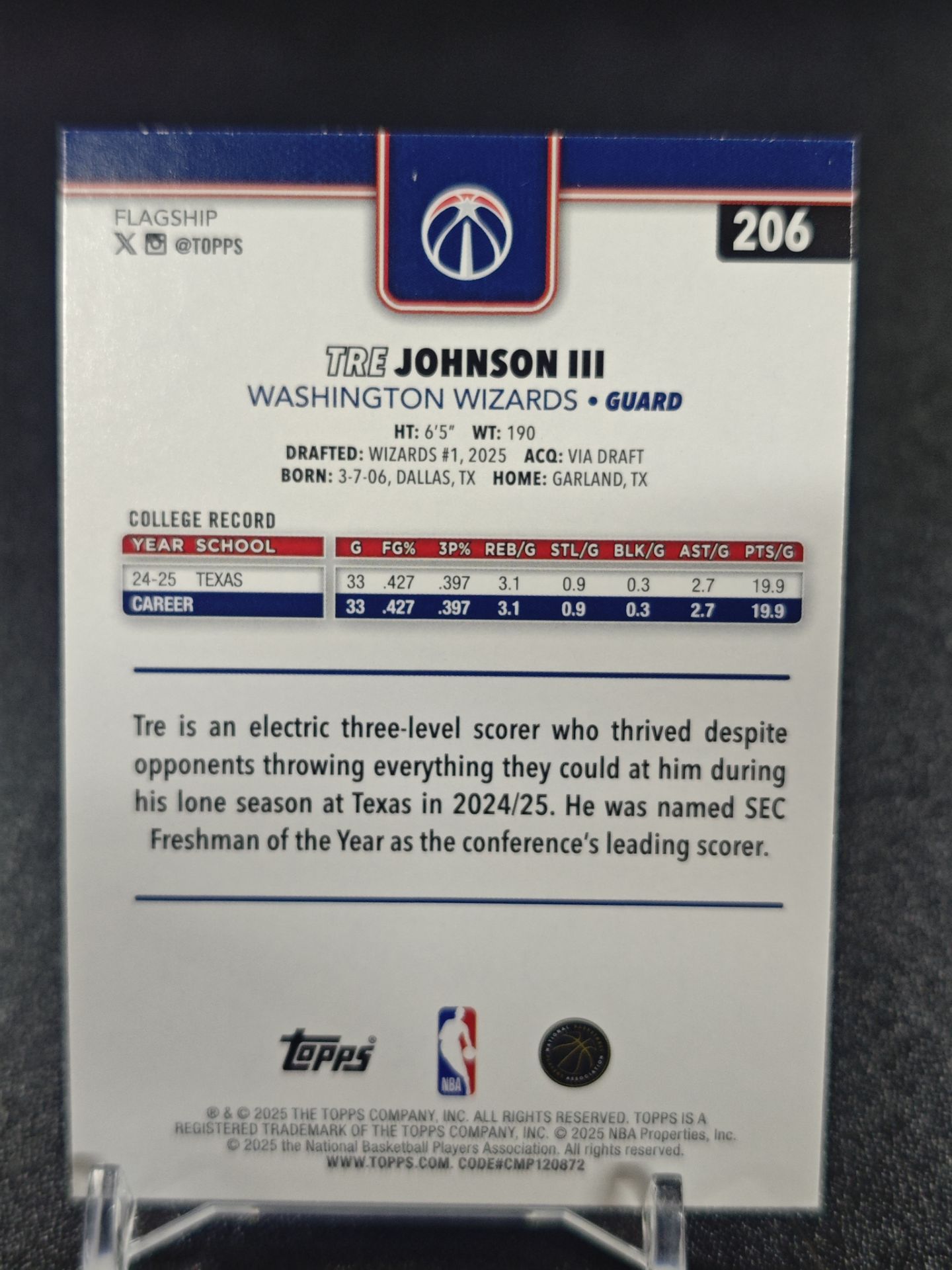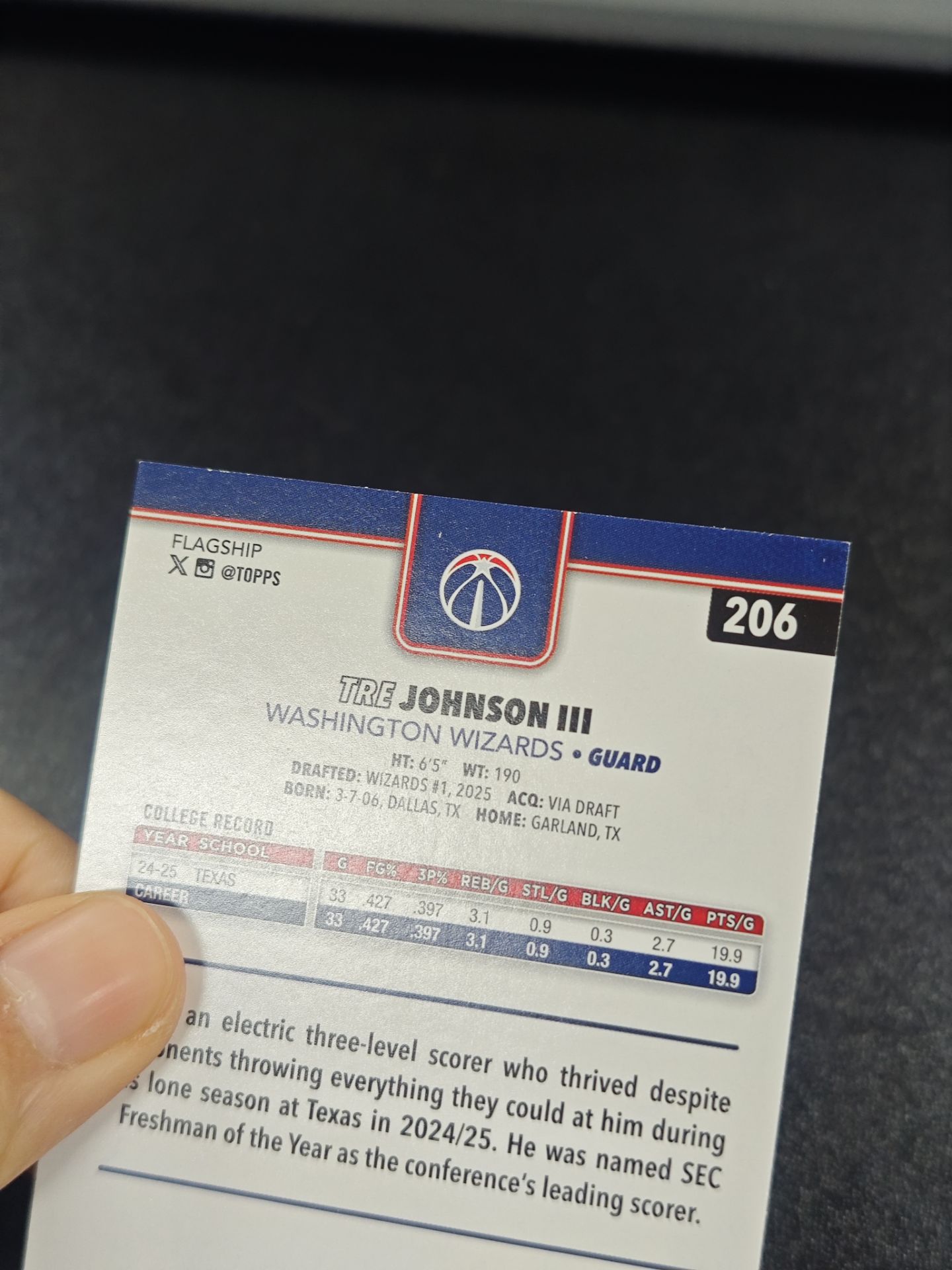 【浩行拍卖 截标预付82%】2025 topps Flagship tre Johnson iii 奇才 rc 新秀 特雷 约翰逊 III 银碎点 折射 专收必备 瑕疵看图「澄引」1121S02單
