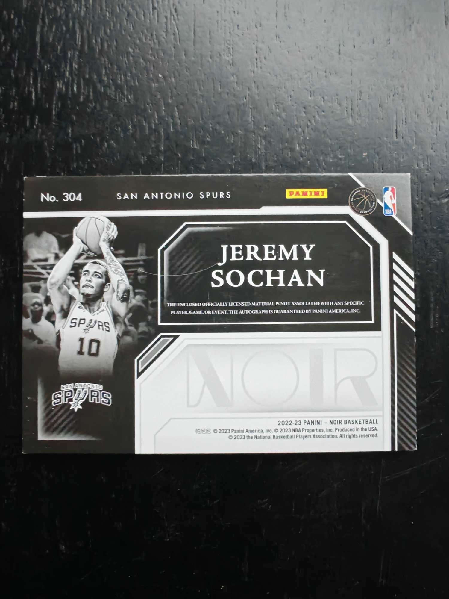 2022-23 Panini Noir Jeremy Sochan RC 诺尔 杰里米索汉 RPA 新秀 patch三色物料 卡签签字 88/99编 马刺