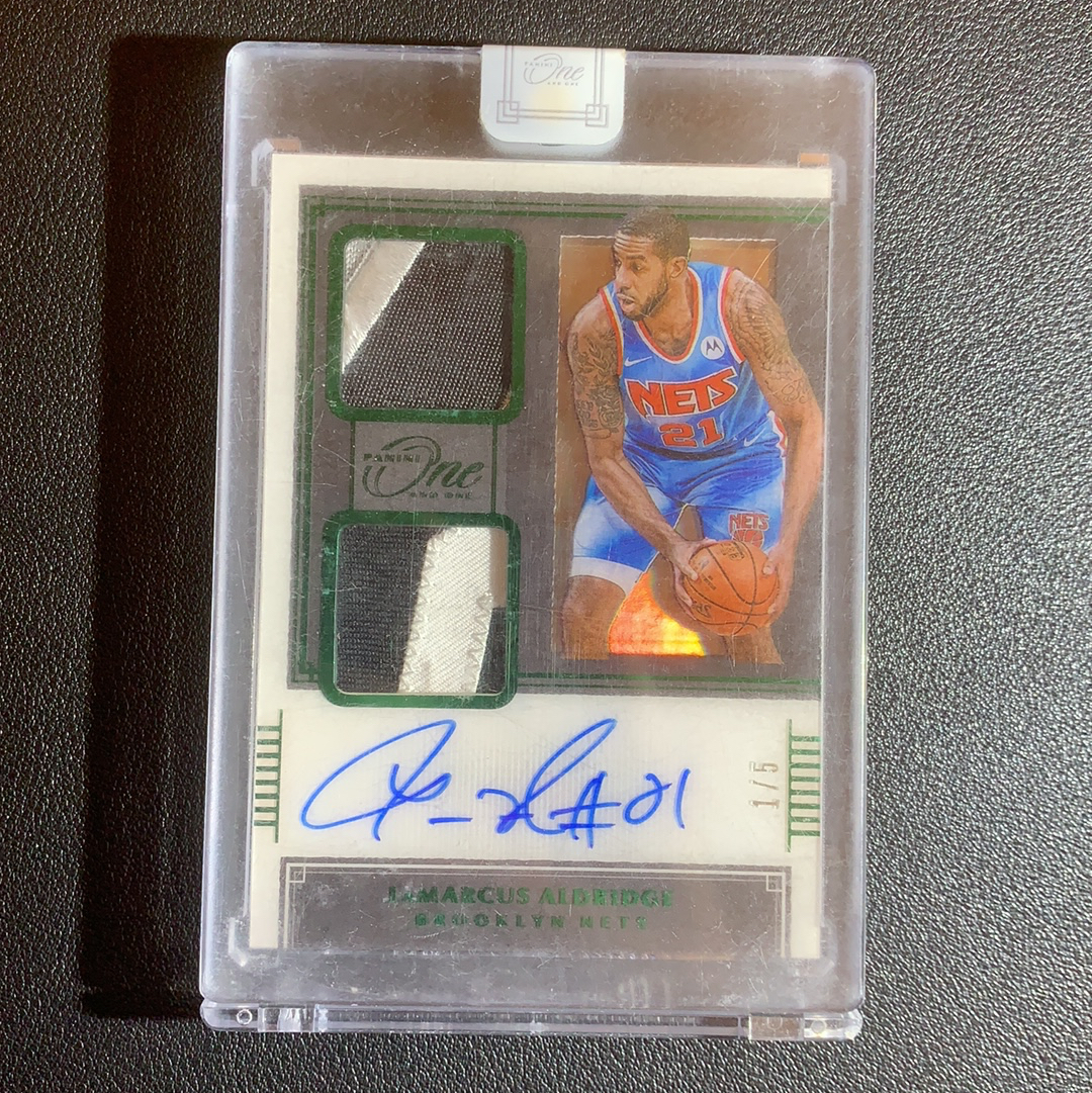 2020-21 Panini One and One LaMarcus Aldridge OAO 阿尔德里奇 卡签 签字 背号签 双窗 球衣 物料 PA 1/5编 首编 超低编 原封砖 -S00429