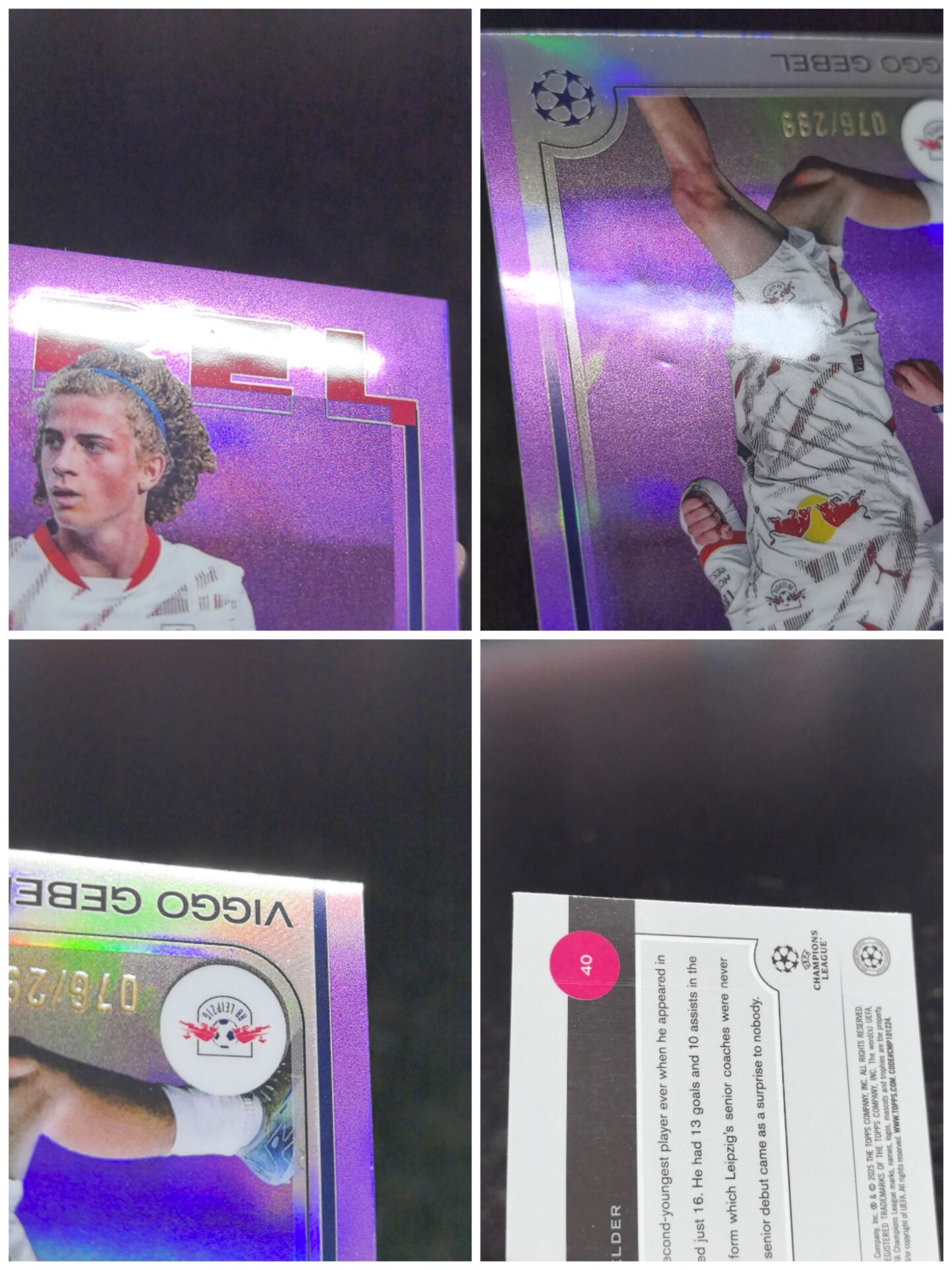 【浩行拍卖 截标预付82%】2025 topps Chrome viggo gebel 欧冠 莱比锡红牛 维果 加贝尔 新秀 rc 紫折 折射 76/299编 专收必备 瑕疵看图「雾凌」1122N01紋