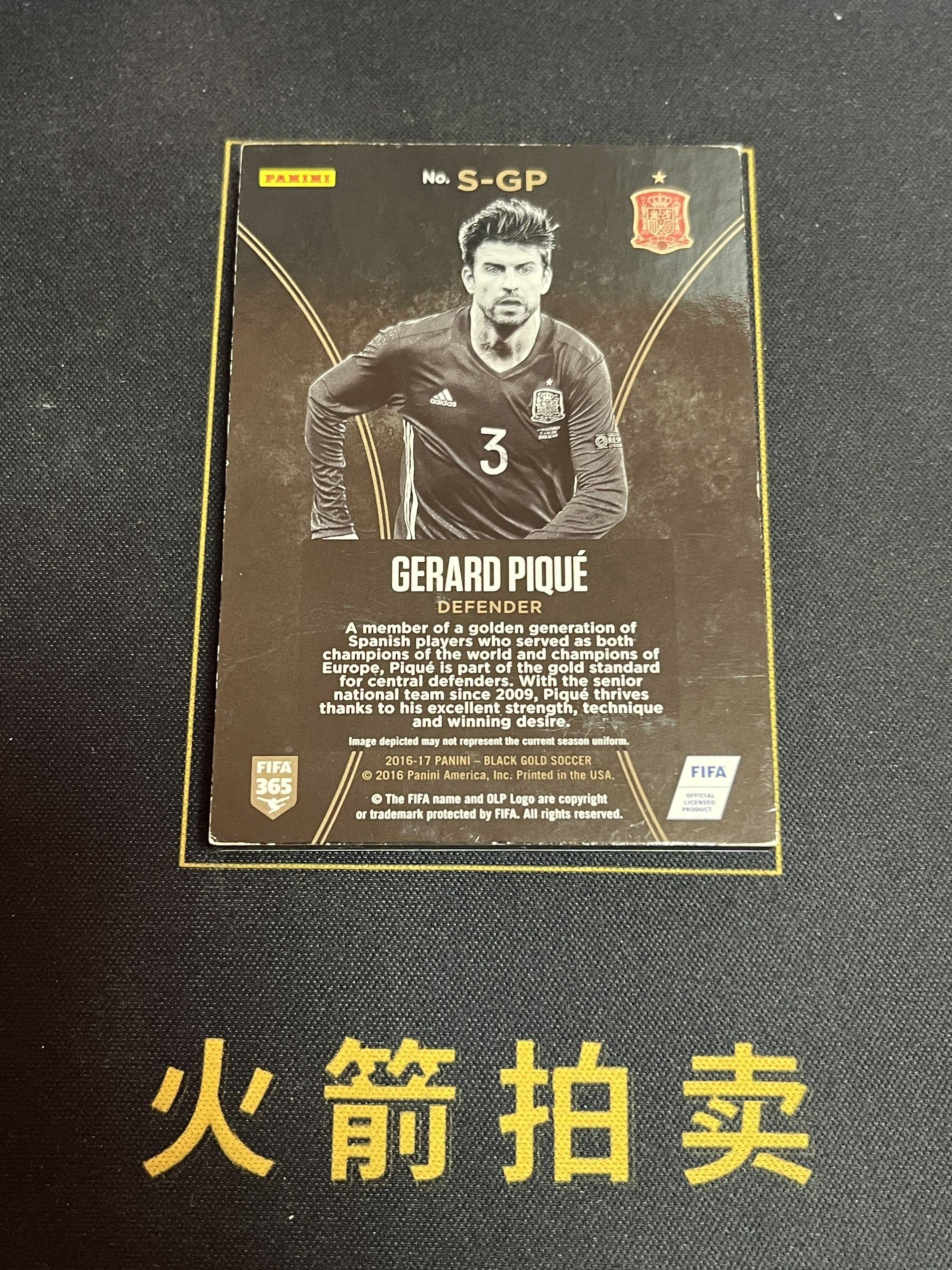 【火箭拍卖 截标预付82%】2016-17 panini black gold gerard pique 黑金 西班牙 杰拉德 皮克 星星实物 五星镶嵌 沙盒 镜面 专收必备 瑕疵看图「热量」1122D02祺