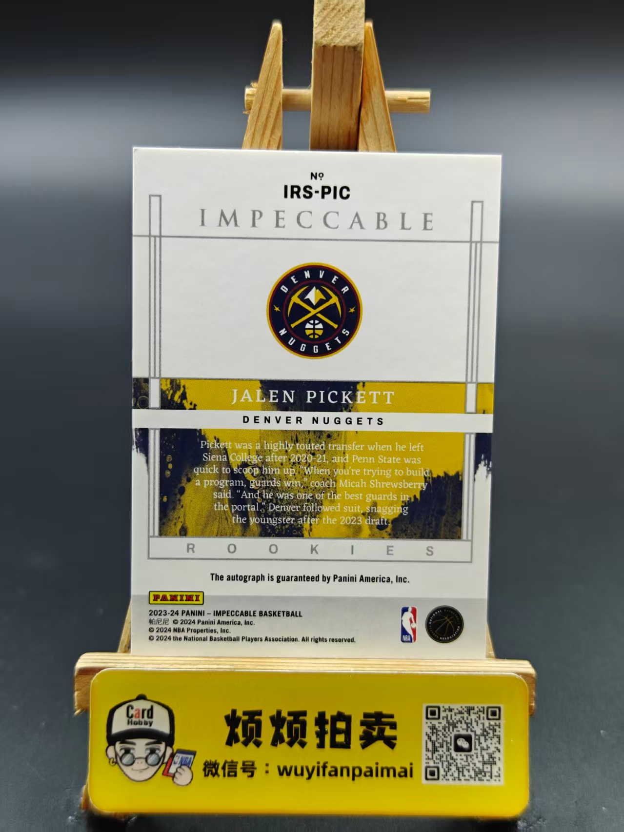 2.参拍:卡品墨迹如图所示(厚卡异形卡等都有正常白边白角,部分系列会有特殊瑕疵),请认真看图后再谨慎出价。不接受任何艺术家买卡,如拍到卡后有任何艺术家行为(包括但不限于在通行卡品里挑瑕疵索要赔偿或退卡等)一律拉黑投诉处理。所卖卡未经描述均为通行品,可能会有细微瑕疵;打包标小卡可能会有不同程度的瑕疵,不保障卡品;评级卡壳和原封砖的磨损不包含在卡品范围内;多张上拍卡品通行的同款卡片随机发货。竞拍前可以私聊要细节图,成交后再以有瑕疵、勿拍等理由退卡的一律拒绝,介意者请勿参拍!参拍即视为已读同意!