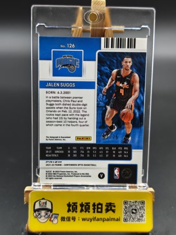 2.参拍:卡品墨迹如图所示(厚卡异形卡等都有正常白边白角,部分系列会有特殊瑕疵),请认真看图后再谨慎出价。不接受任何艺术家买卡,如拍到卡后有任何艺术家行为(包括但不限于在通行卡品里挑瑕疵索要赔偿或退卡等)一律拉黑投诉处理。所卖卡未经描述均为通行品,可能会有细微瑕疵;打包标小卡可能会有不同程度的瑕疵,不保障卡品;评级卡壳和原封砖的磨损不包含在卡品范围内;多张上拍卡品通行的同款卡片随机发货。竞拍前可以私聊要细节图,成交后再以有瑕疵、勿拍等理由退卡的一律拒绝,介意者请勿参拍!参拍即视为已读同意!