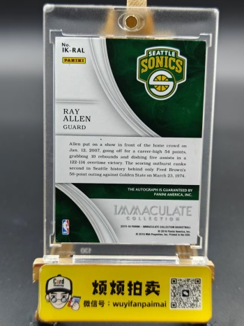 2.参拍:卡品墨迹如图所示(厚卡异形卡等都有正常白边白角,部分系列会有特殊瑕疵),请认真看图后再谨慎出价。不接受任何艺术家买卡,如拍到卡后有任何艺术家行为(包括但不限于在通行卡品里挑瑕疵索要赔偿或退卡等)一律拉黑投诉处理。所卖卡未经描述均为通行品,可能会有细微瑕疵;打包标小卡可能会有不同程度的瑕疵,不保障卡品;评级卡壳和原封砖的磨损不包含在卡品范围内;多张上拍卡品通行的同款卡片随机发货。竞拍前可以私聊要细节图,成交后再以有瑕疵、勿拍等理由退卡的一律拒绝,介意者请勿参拍!参拍即视为已读同意!