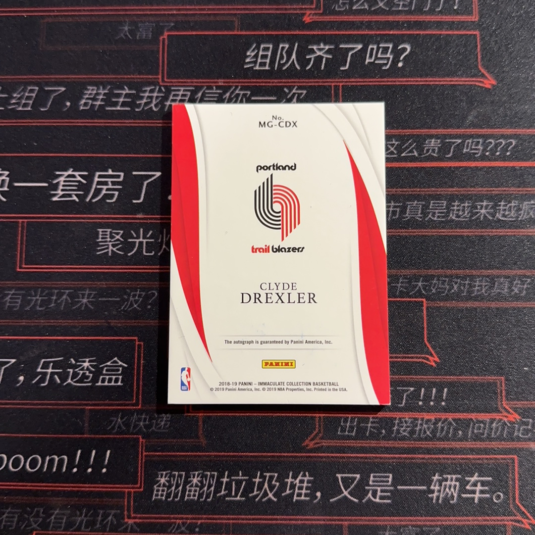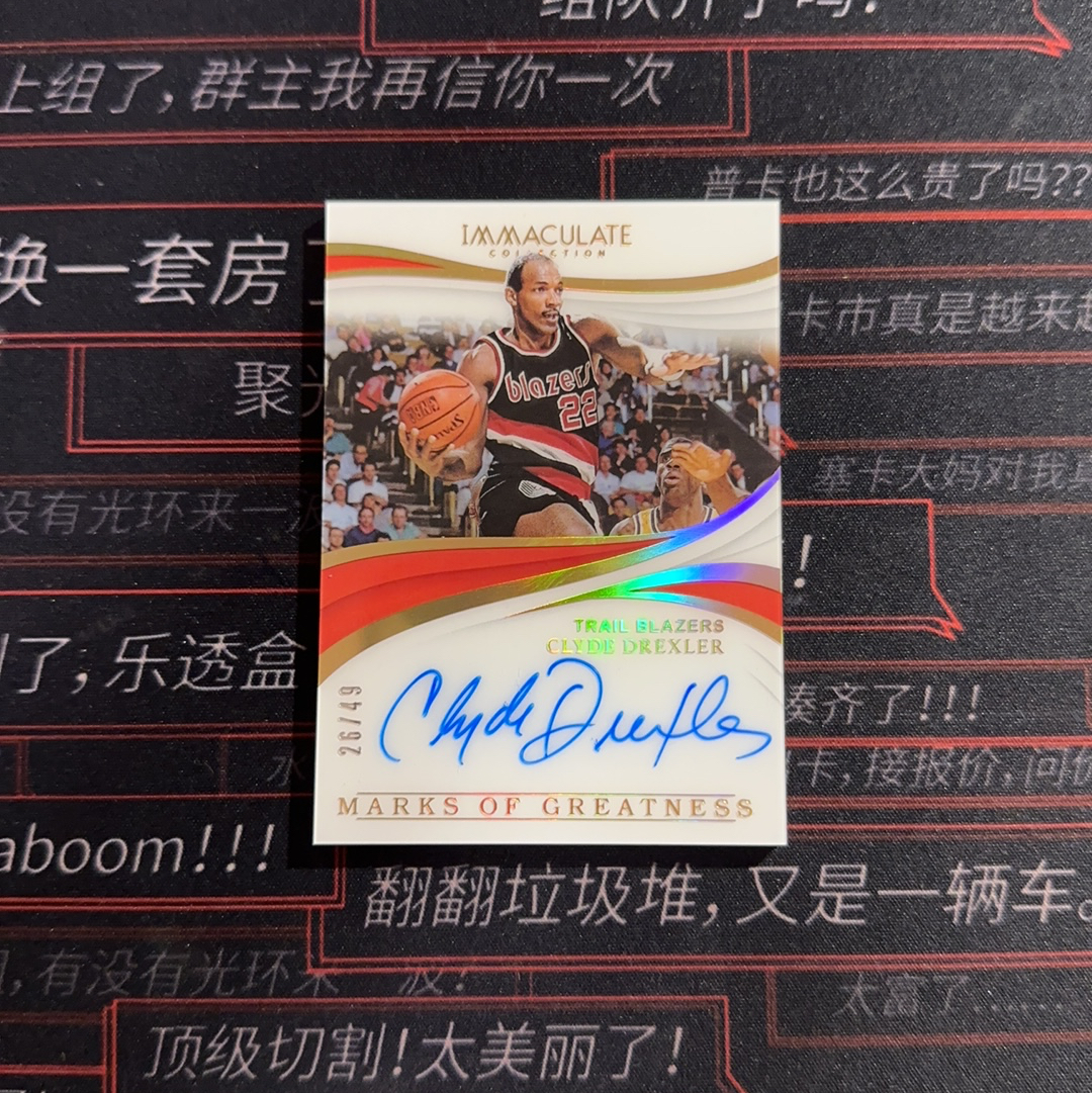 [qz拍卖]2018-19 Panini Immaculate 开拓者 德雷克斯勒 Clyde Drexler 26/49编伟大签字 Marks Of Greatness 镜面卡签 大比例 专收必备