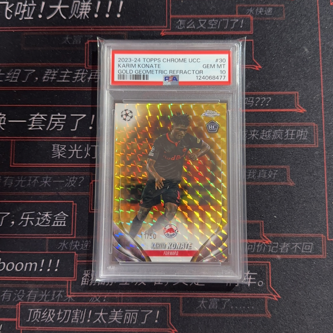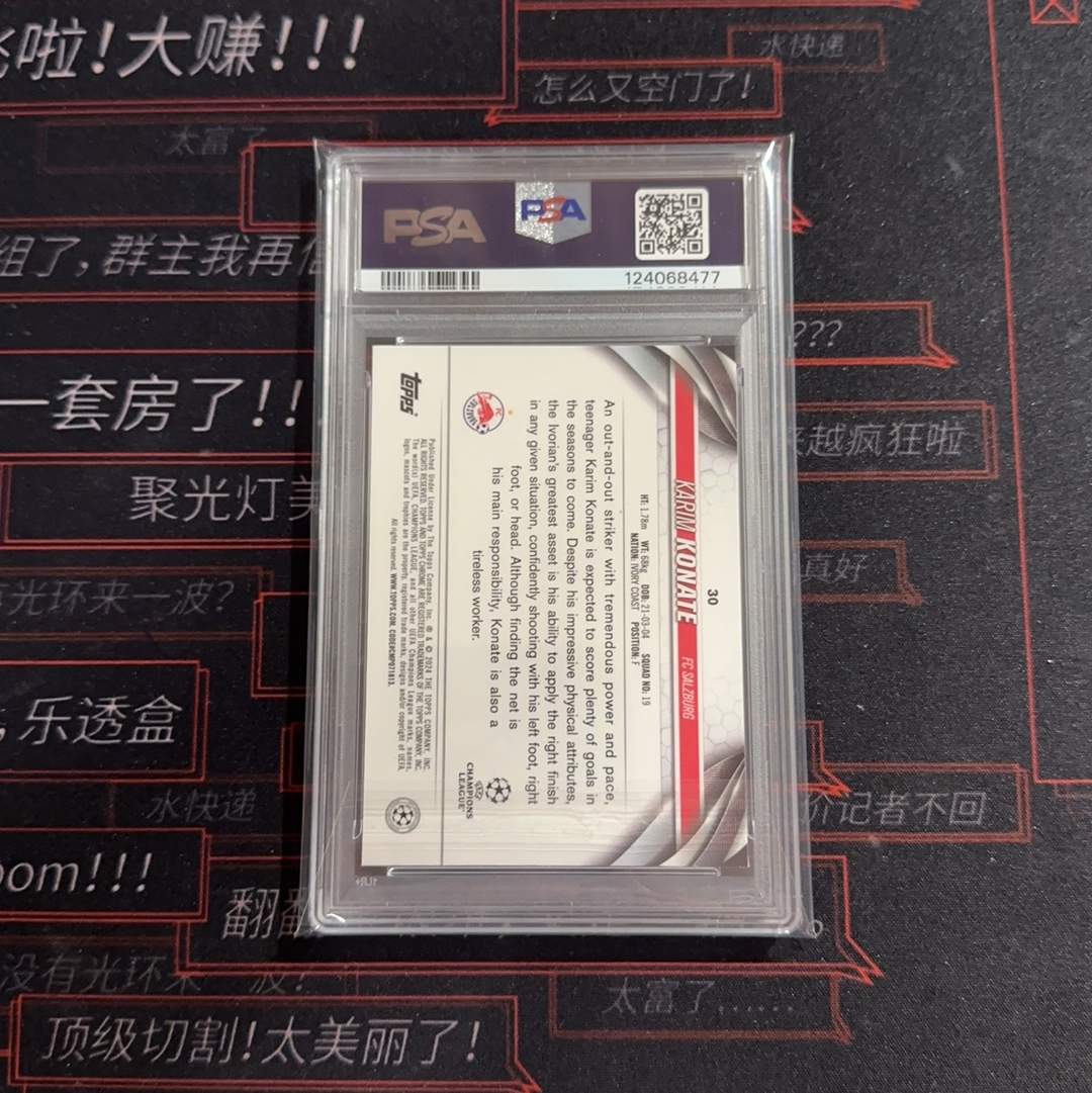 [qz拍卖]2023-24 Topps Chrome UCC 欧冠 萨尔茨堡红牛 新秀 rc 科纳特 Karim Konate 11/50编金几何折 PSA10分评级卡 大比例 潜力无限 专收必备