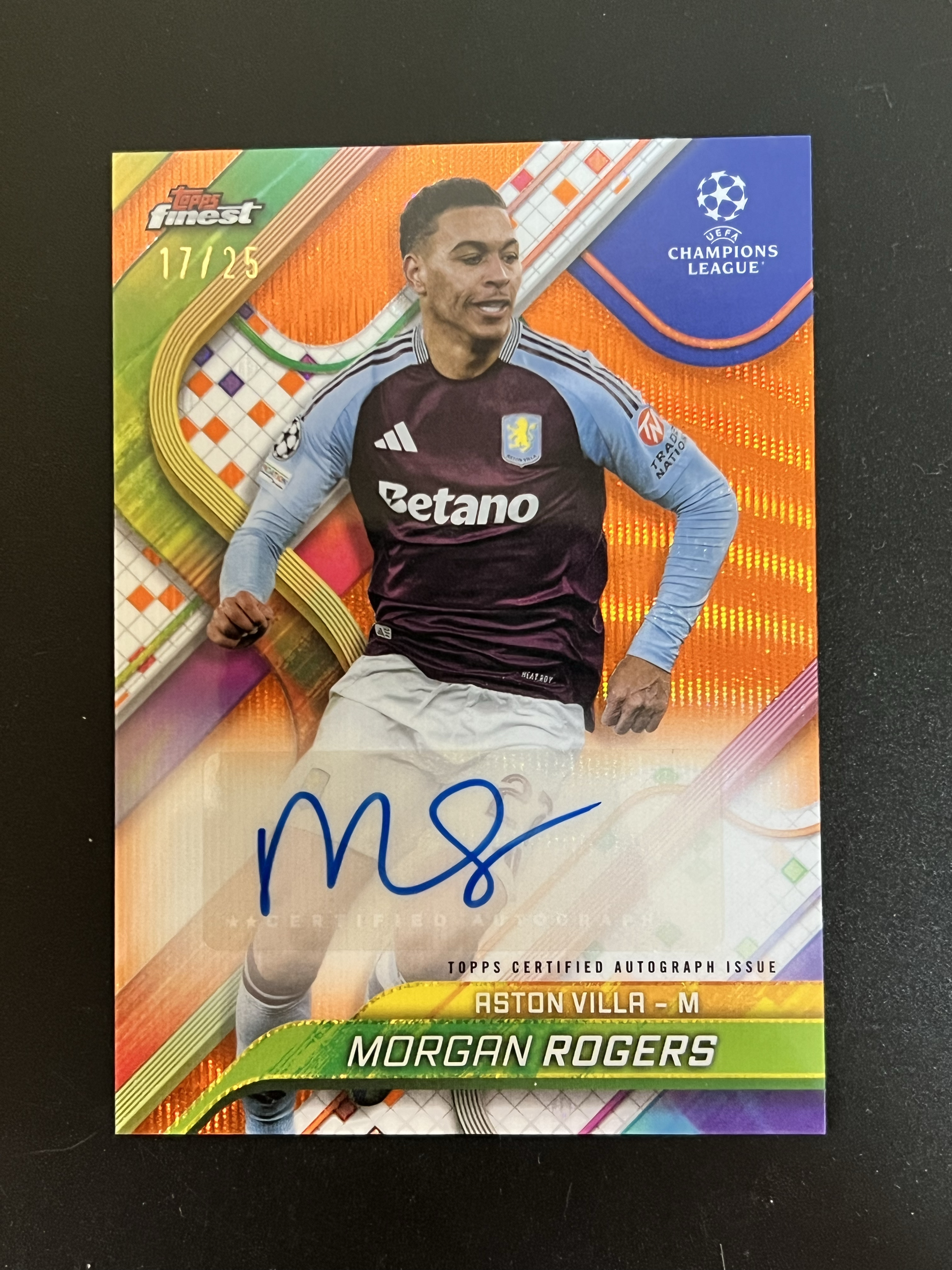 2024-25 Topps Finest Morgan Rogers 摩根 罗杰斯 阿斯顿维拉 欧冠 签字 25编 橙波纹折 收藏必备