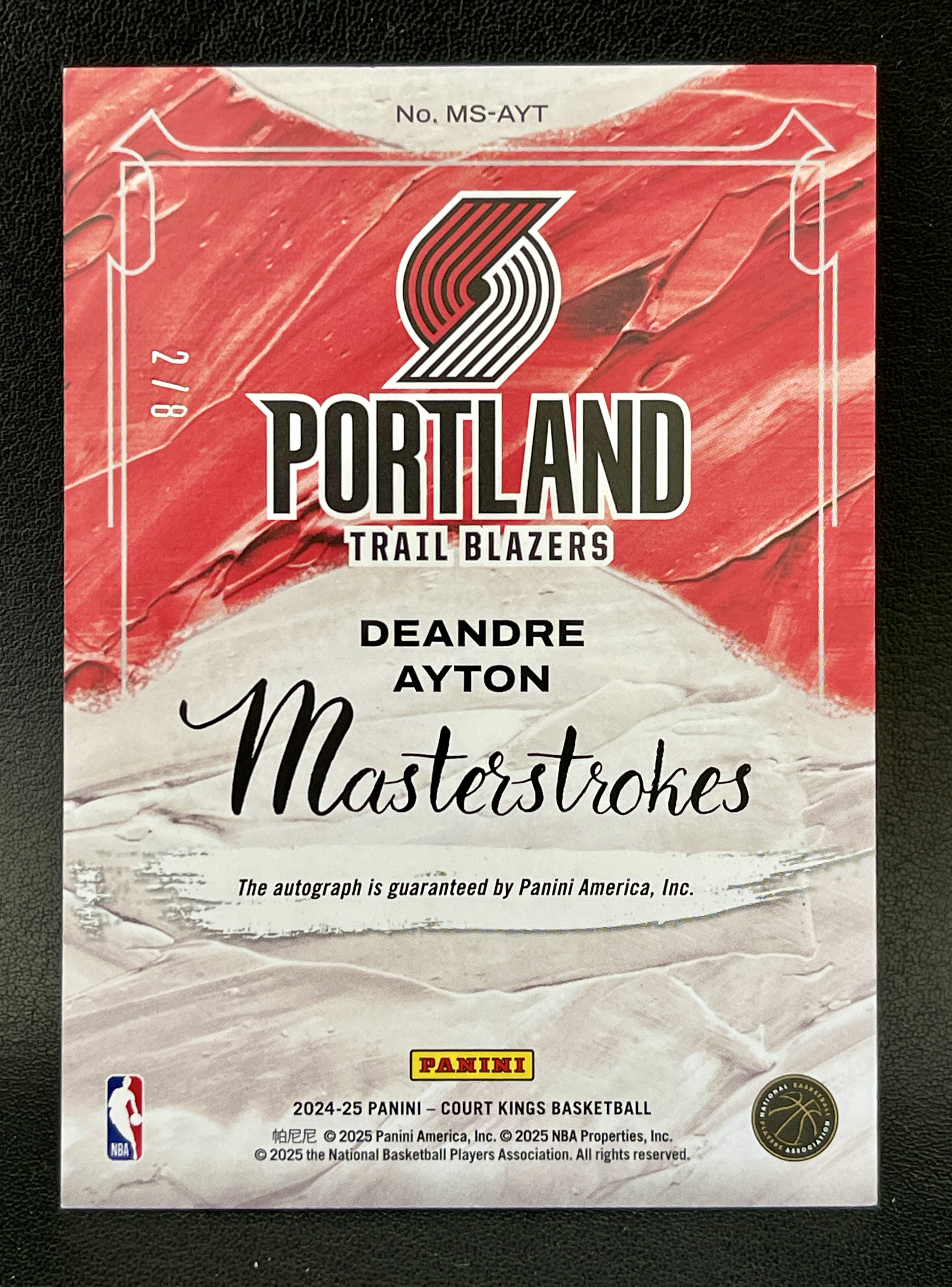 艾顿 顿宝 2024-25 Panini 油画 大师特卡 2/8编 超低编 红折 红平行 折射 亲笔签名 蓝字 墨迹完美 太阳 开拓者 湖人 联手詹姆斯东契奇里夫斯 值得收藏!