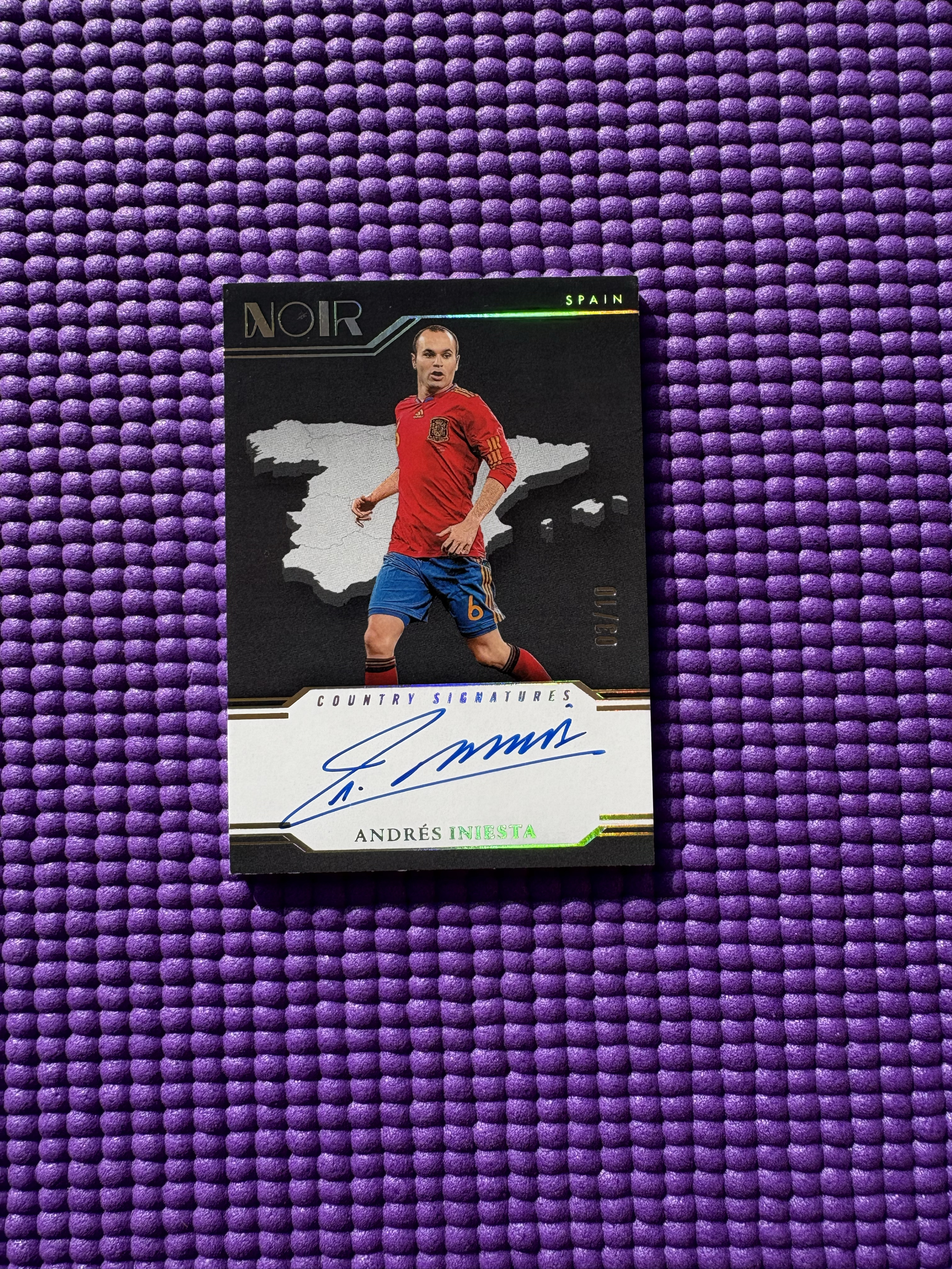 2025-26 Panini Noir Andres Iniesta 西班牙 中场指挥官 小白 伊涅斯塔 10编 金平行 国家签字 完美签 实卡精美 收藏价值高