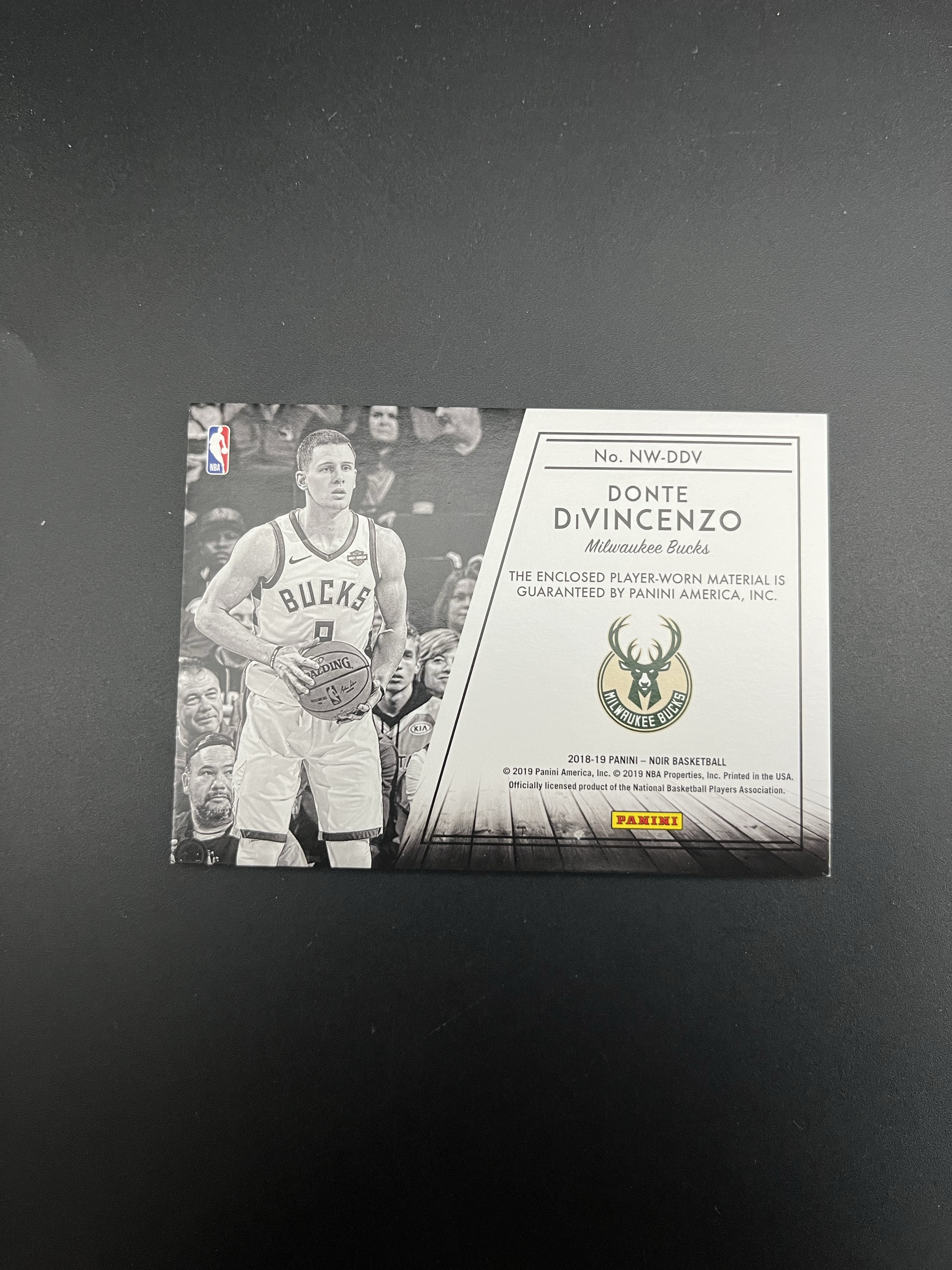 2018-19 Panini Noir Donte DiVincenzo 【拉姆代卖】唐特 迪文琴佐 新秀 诺尔 99编 亲穿 球衣 物料 雄鹿卡品如图 鲁【zpy】