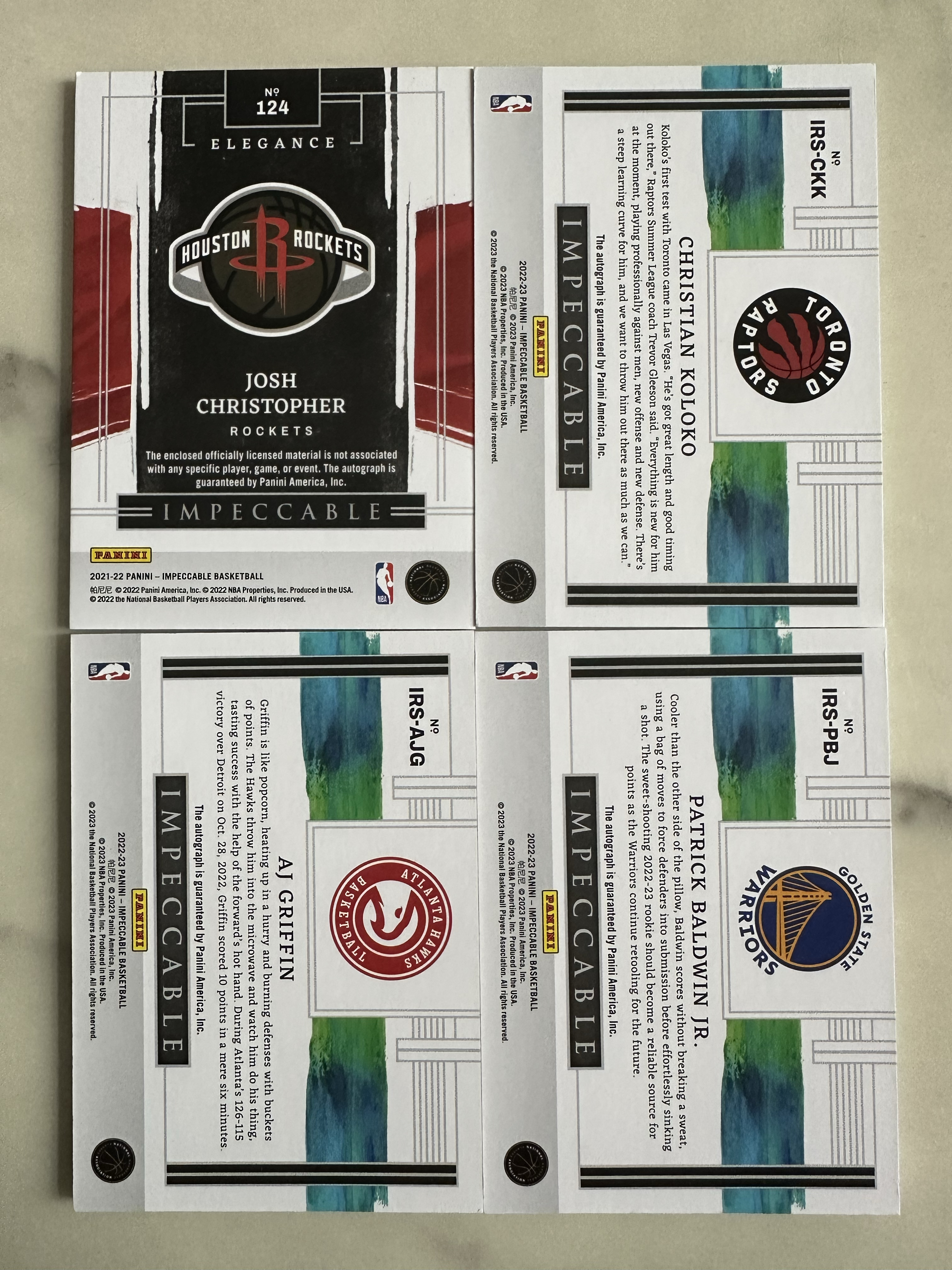 2022 Panini Impeccable Josh Christopher RC 克里斯托弗 88编 RPA AJ格里芬 鲍德温 科洛克 新秀卡签 小真金 4张打包 不保卡品(浩哥12)