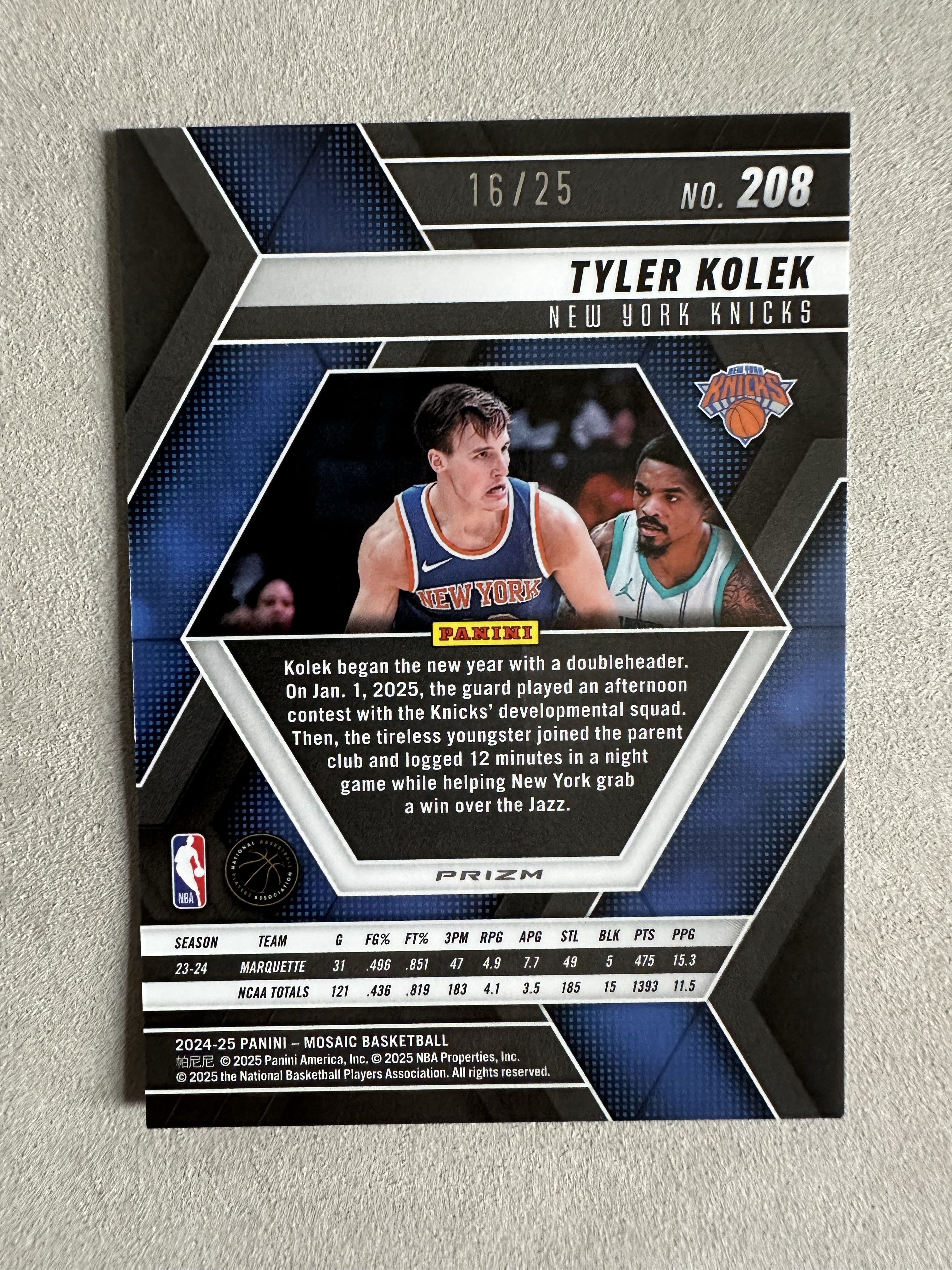 2025 Panini Mosaic Tyler Kolek RC 尼克斯队 新秀 科洛克 马赛克 新秀25编白折 白圈圈折射 瑕疵如图 卡量稀少 凑套必备(浩哥12)