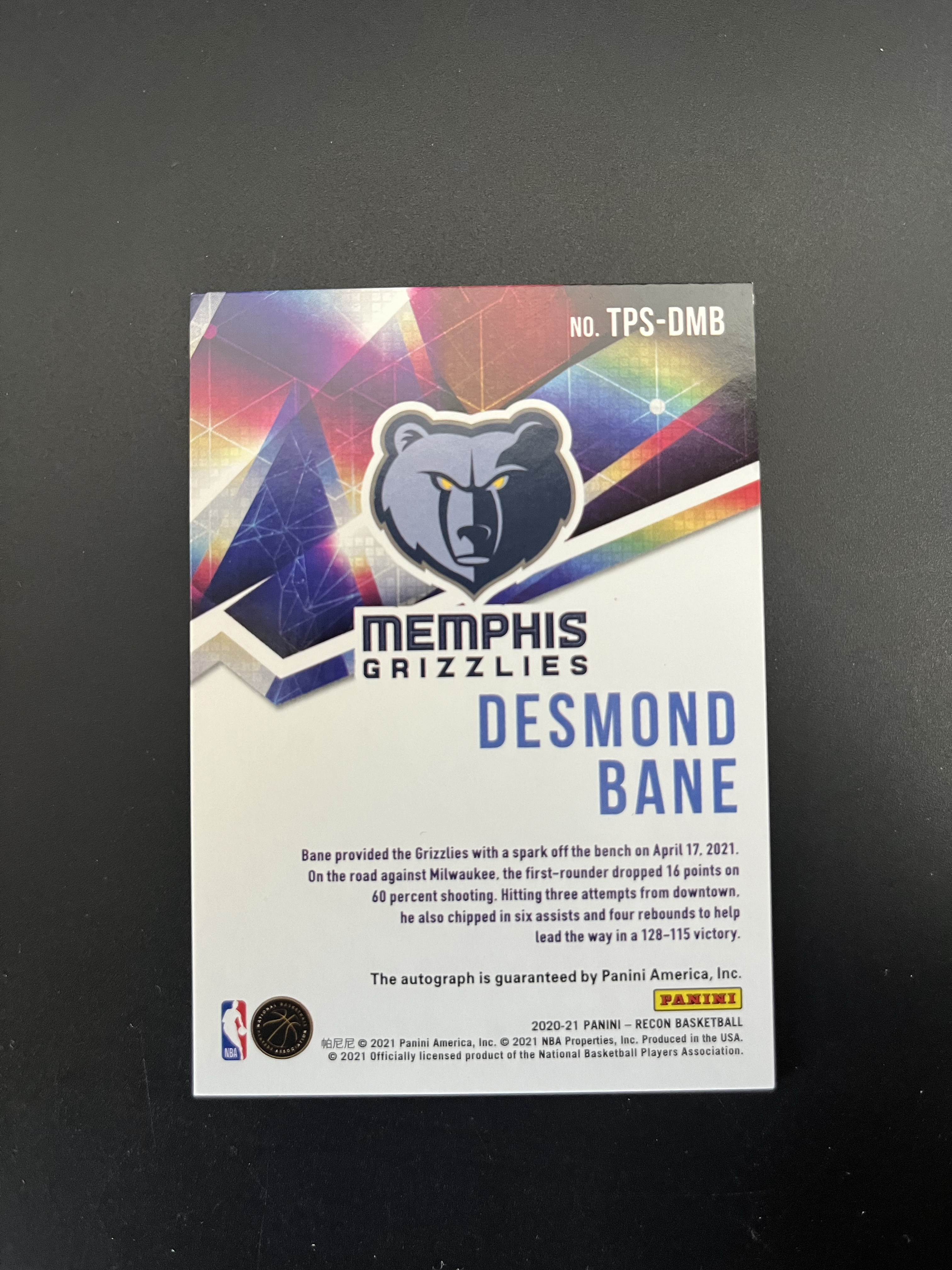 2020-21 Panini Recon Desmond Bane RC 【拉姆代卖】新秀 RC 贴签 签字 base 德斯蒙德 贝恩 灰熊 潜力新秀 卡品如图 鲁【zpy】