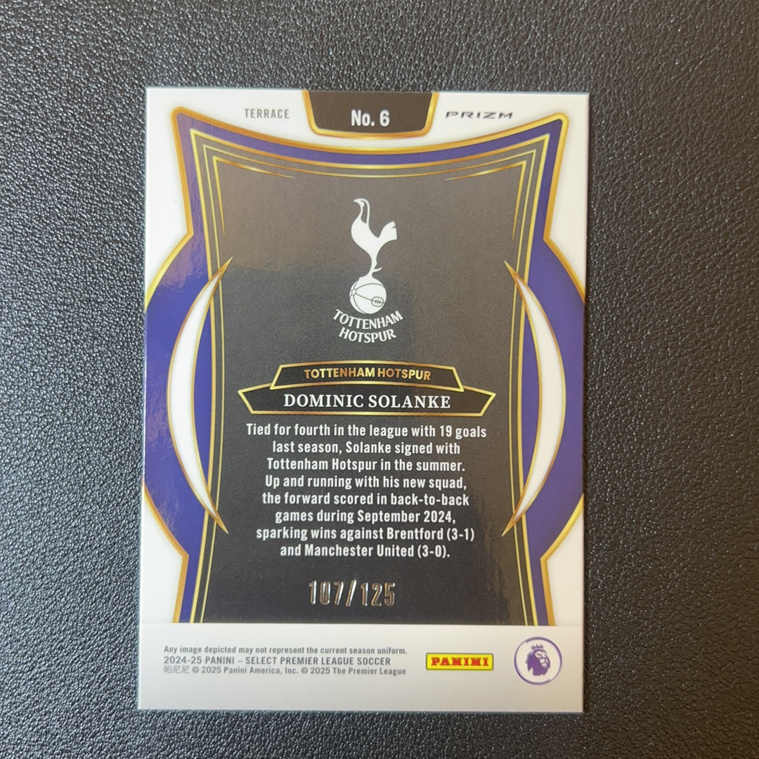 2024-25 Panini Select DOMINIC SOLANKE 多米尼克 索兰克 英格兰 伯恩茅斯 热刺 英超 一级 125编 铜棋盘折 折射 轻印-S00260
