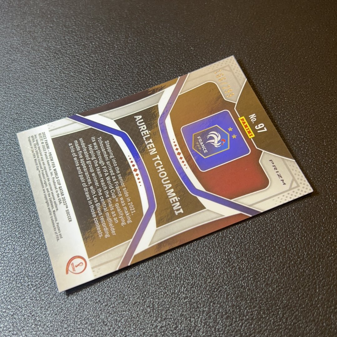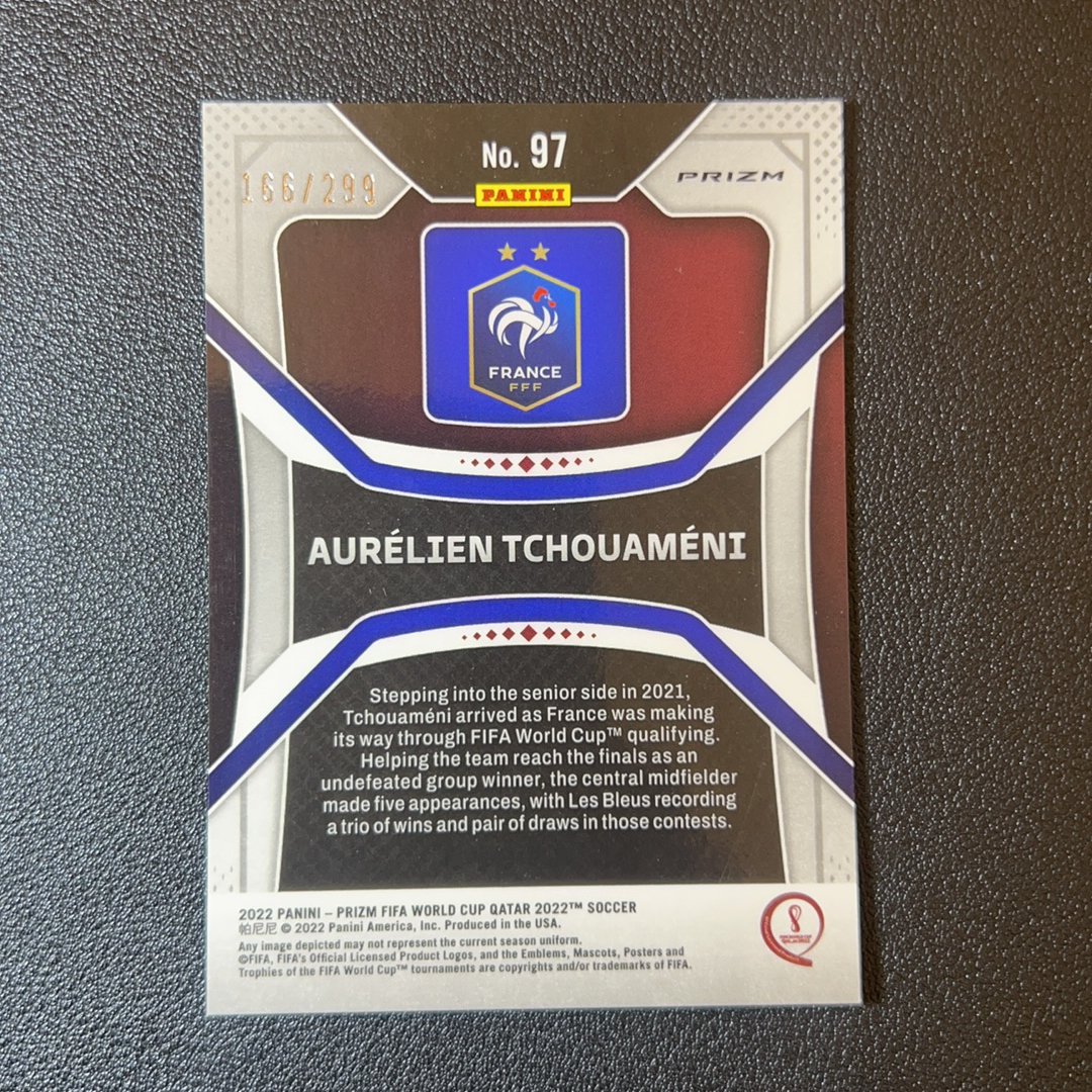 2022 Panini World Cup Prizm Aurélien Tchouameni RC 楚阿梅尼 皇家马德里 摩纳哥 法国 中场大师 投资收藏必备 299编 蓝折 轻印-S00260