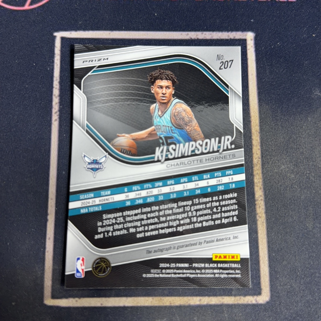 2024-25 Panini Prizm KJSIMPSON JR 球票 黄蜂 新秀 rc KJ·辛普森 签字 银折 jiao