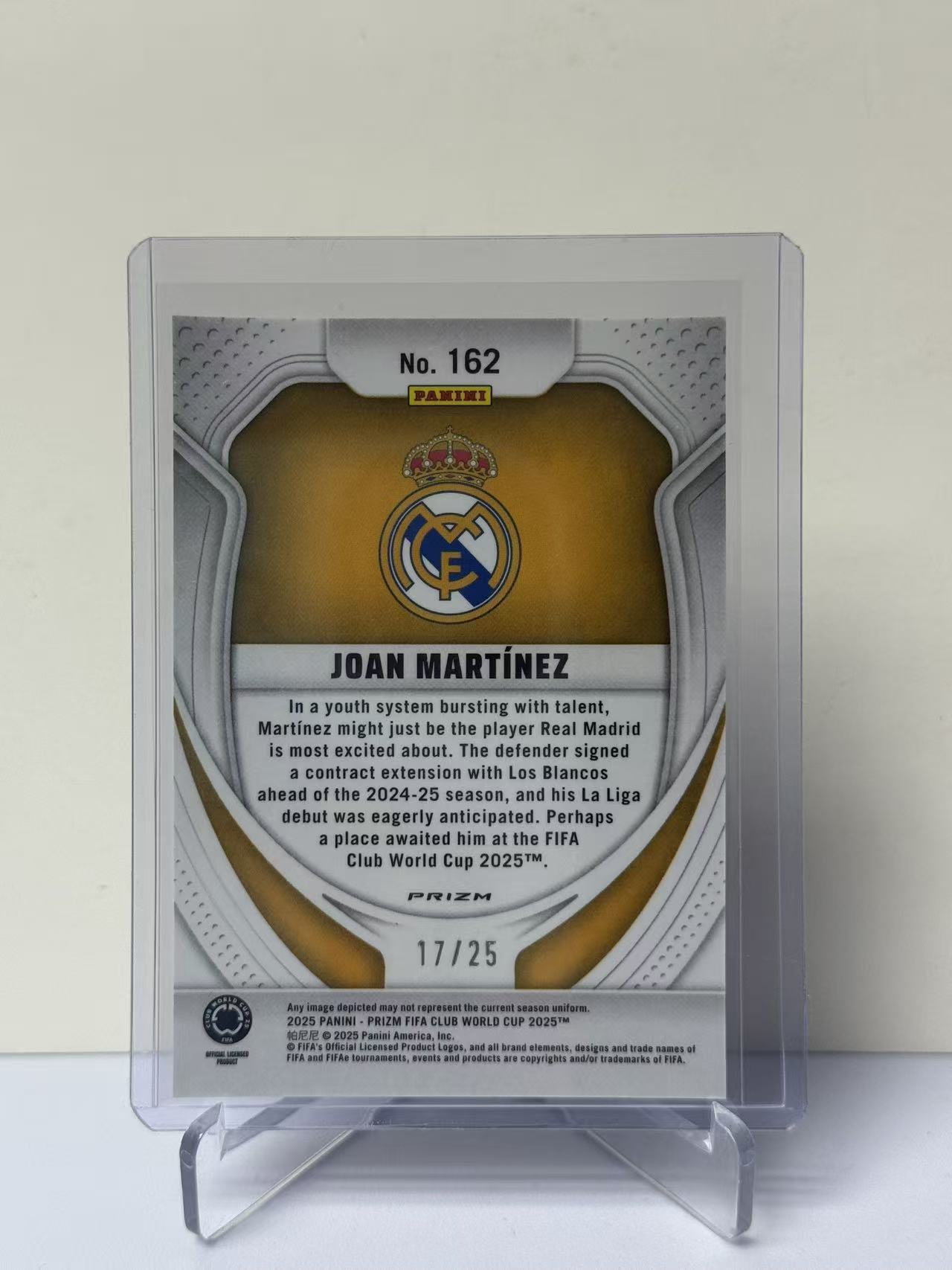 2025 Panini Prizm Joan Martinez RC 世俱杯PZ 皇马 皇家马德里 乔安 马丁内斯 RC新秀 金mojo折 17/25编 低编 收藏必备 卡品如图 9527