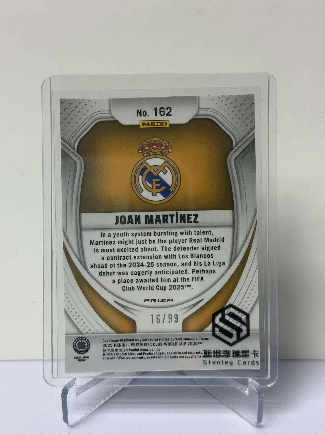 2025 Panini Prizm Joan Martinez RC 世俱杯PZ 皇马 皇家马德里 乔安 马丁内斯 RC新秀 青折 16/99编 收藏必备 卡品如图 9527