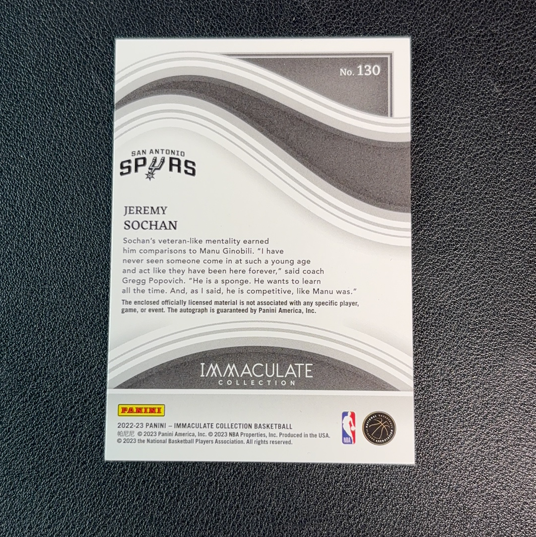 2022-23 Panini Immaculate Jeremy Sochan Imm 马刺 杰里米 索汉 索翰 正新秀 RPA 限量99编 新秀Patch实物签字 SH444 E11124