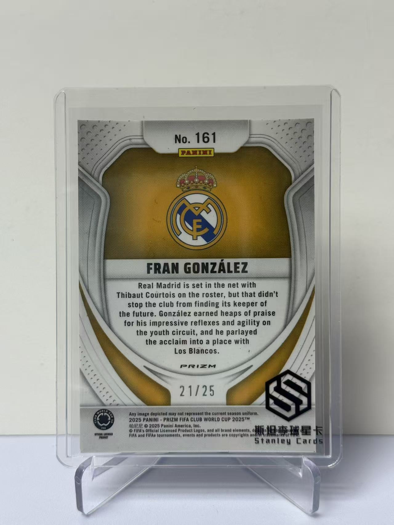 2025 Panini Prizm Fran Gonzalez RC 世俱杯PZ 皇马 皇家马德里 弗兰 冈萨雷斯 新秀 金mojo折 21/25编 低编 收藏必备 卡品如图 9527