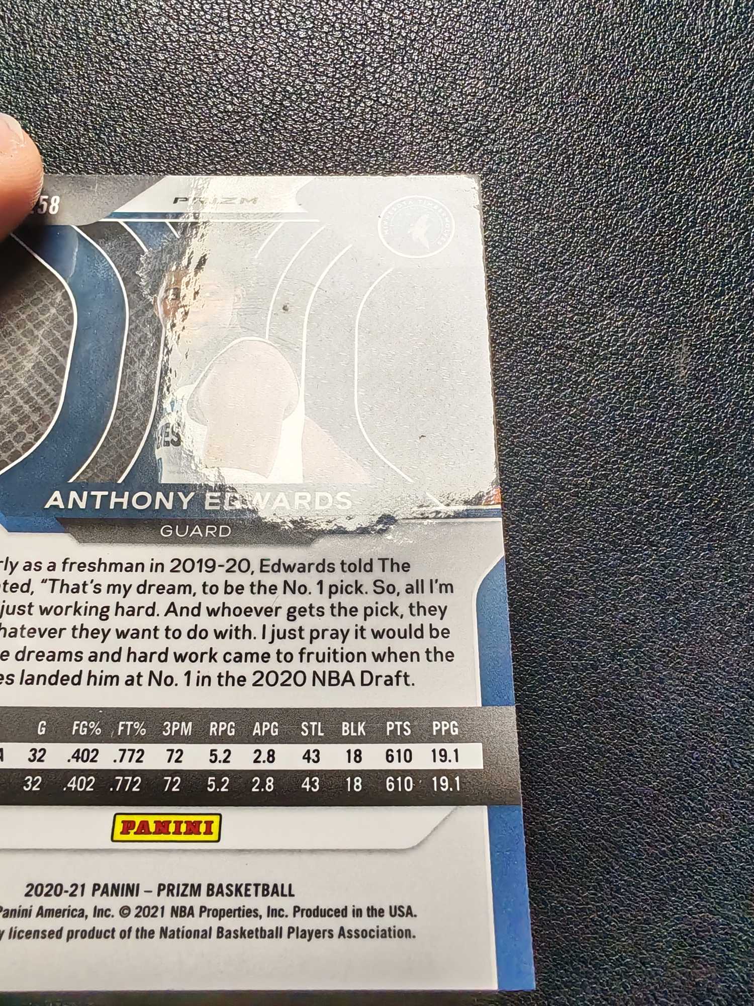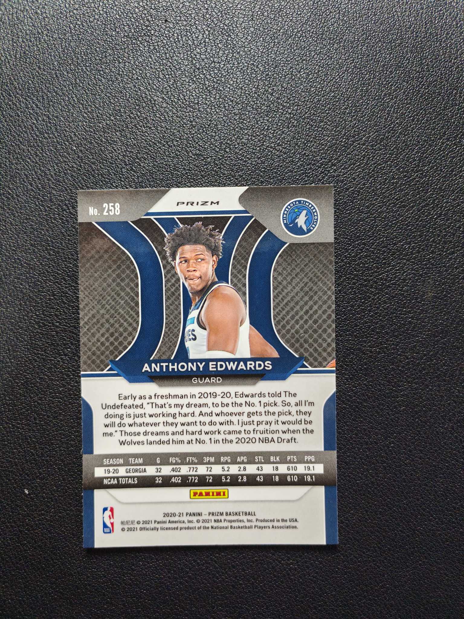2020-21 Panini Prizm Anthony Edwards RC 《招财猫拍卖》Pz 森林狼 新秀RC 安东尼 爱德华兹 华子 银折 正银折 base 值得珍藏 凑套 微瑕【楚河】