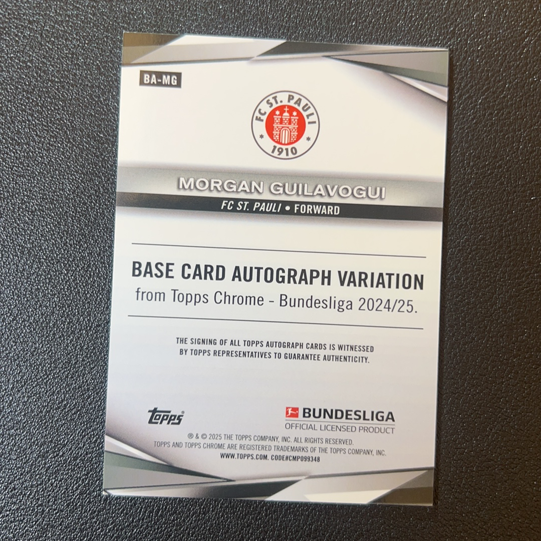 2025 Topps Chrome Morgan Guilavogui 德甲 圣保利 摩根 吉拉沃吉 折射 签字 52编 法国 折射 topps折 独占折射 轻印-SY6476
