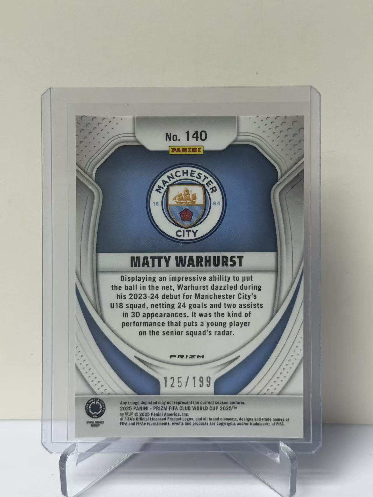 2025 Panini Prizm Matty Warhurst RC 世俱杯PZ 曼城 曼切斯特城 沃赫斯特 RC新秀 红折 125/199编 收藏必备 卡品如图 9527