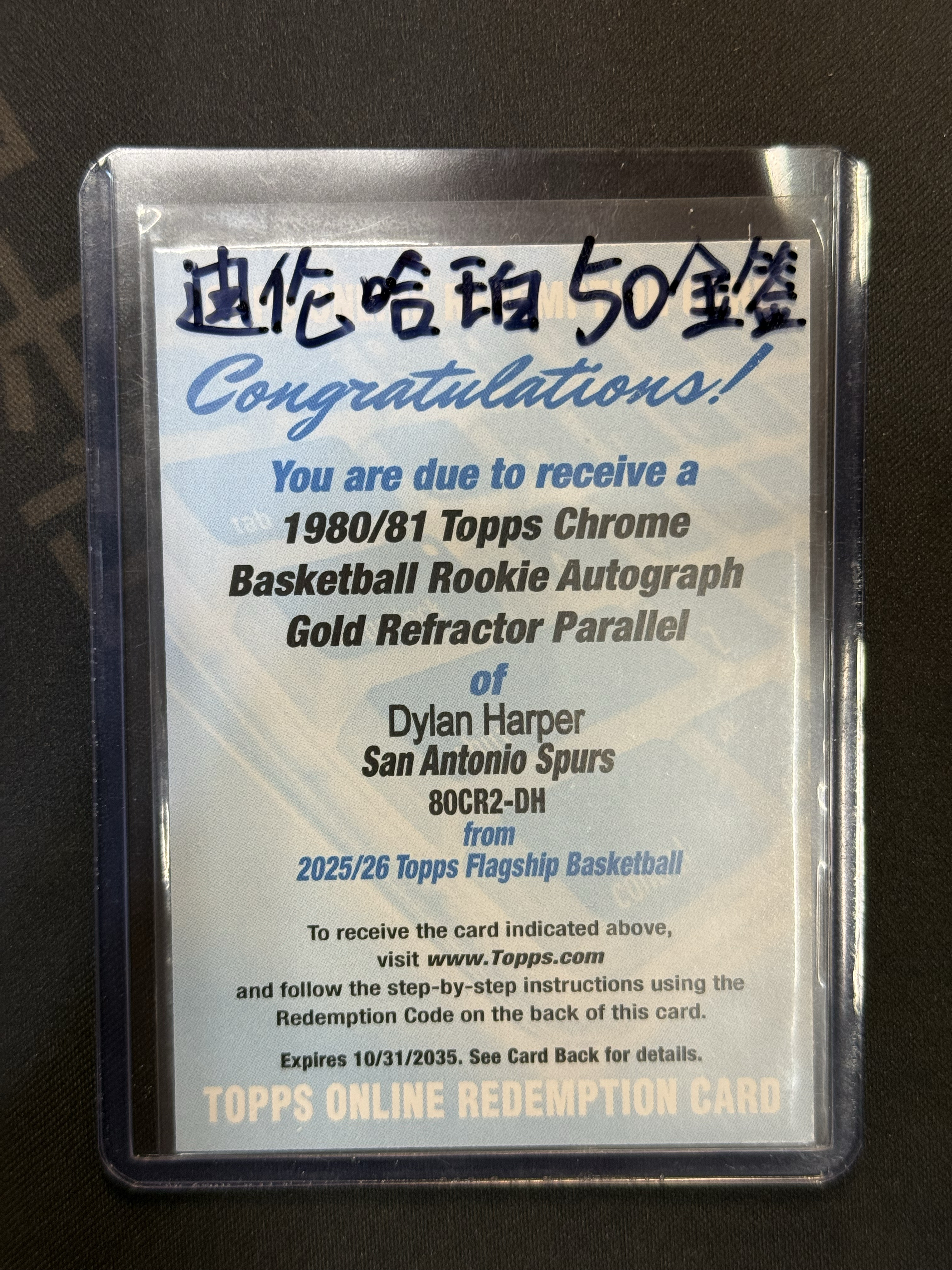2025-26 Topps Flagship Dylan Harper RC 马刺 榜眼 新秀 迪伦 哈珀  Topps Chrome 复古 签字 卡签  50编  金折 金mojo折 交换板 猫