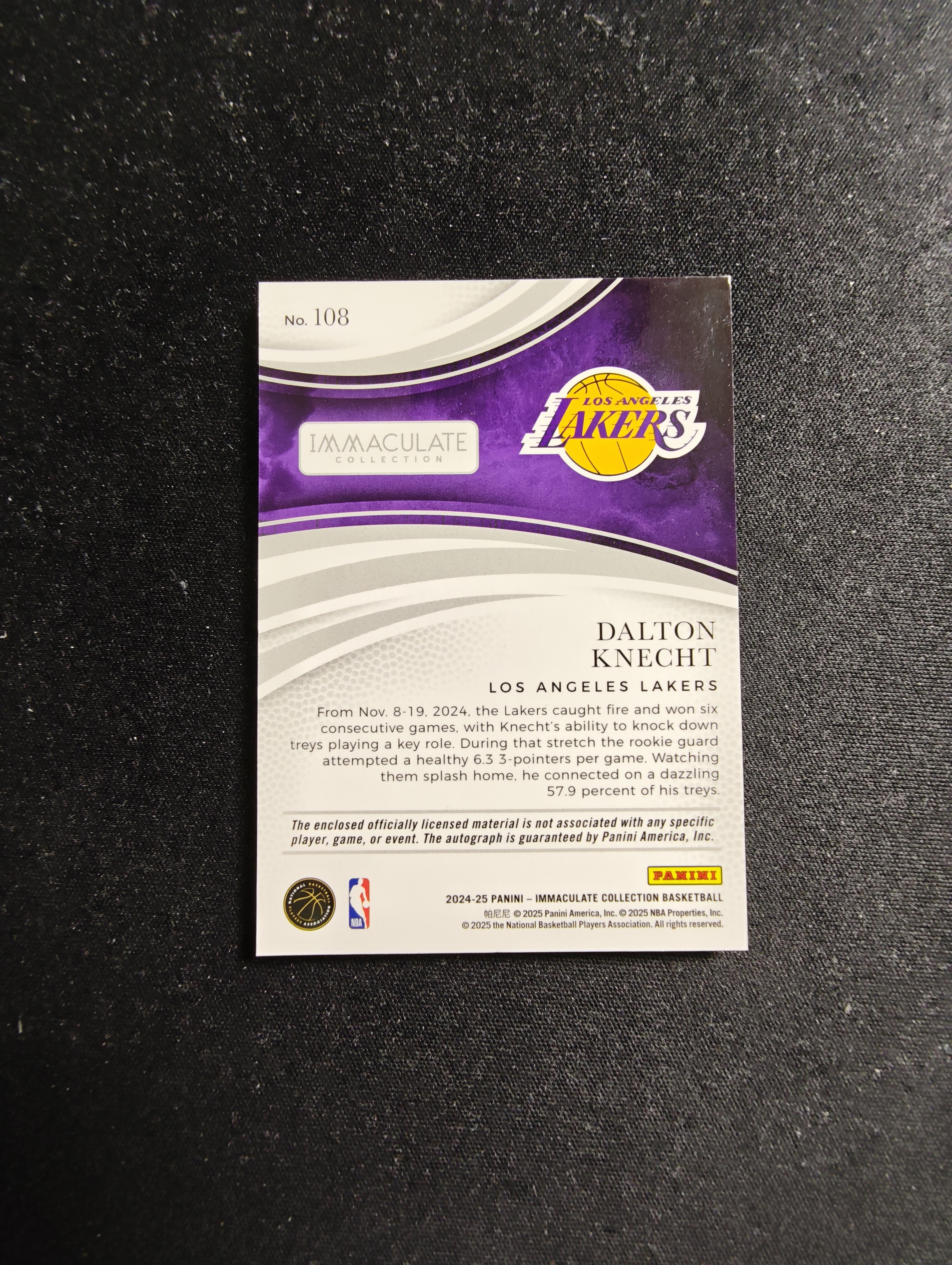 2025 Panini 小光头 不累计 篮球 IMM 新秀 RC 衣料 签字 DALTON KNECHT 克内克特 燊