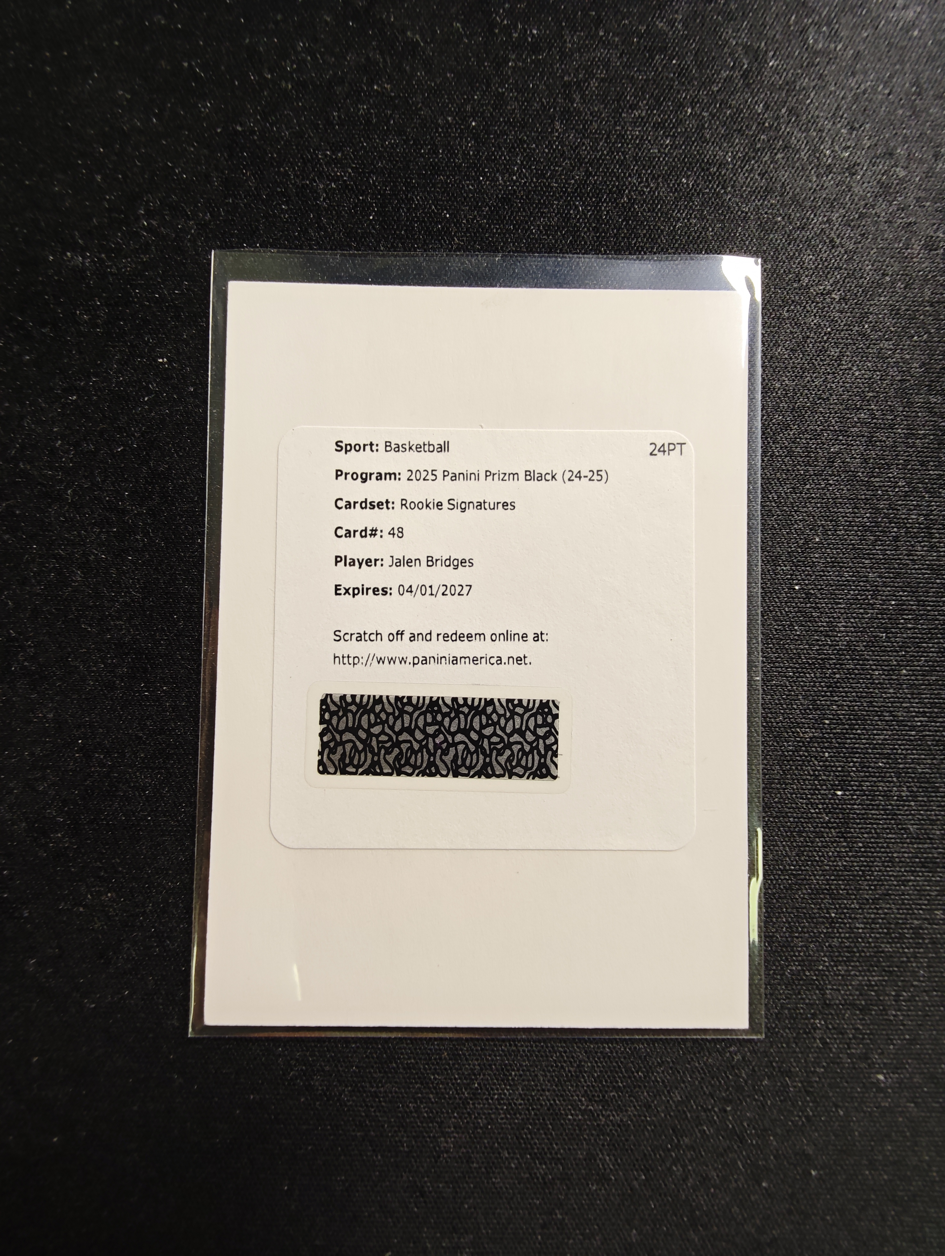 2025 Panini 小光头 不累计 篮球 PRIZM BLACK 新秀 签字 交换板 JALEN BRIDGES 燊