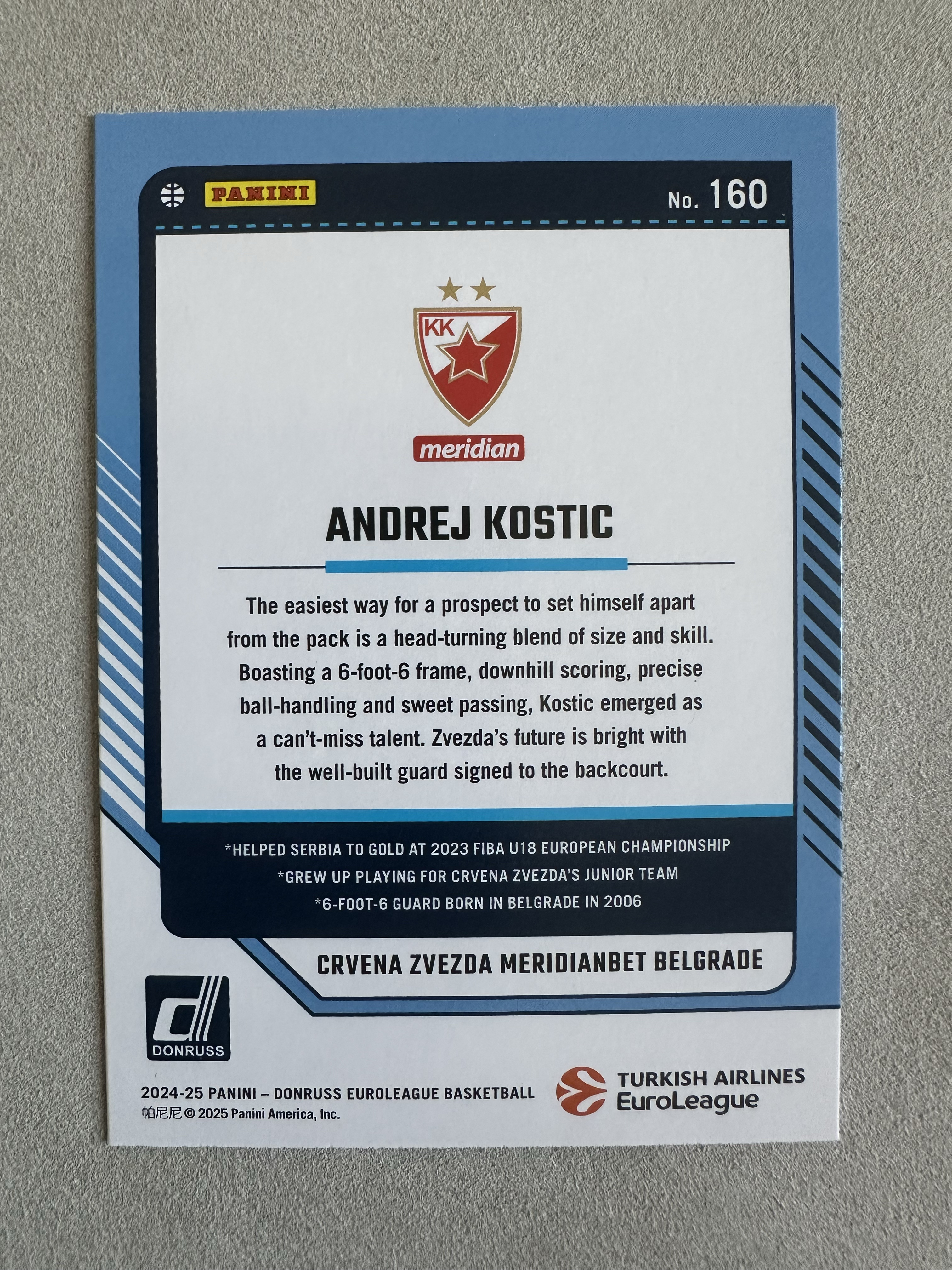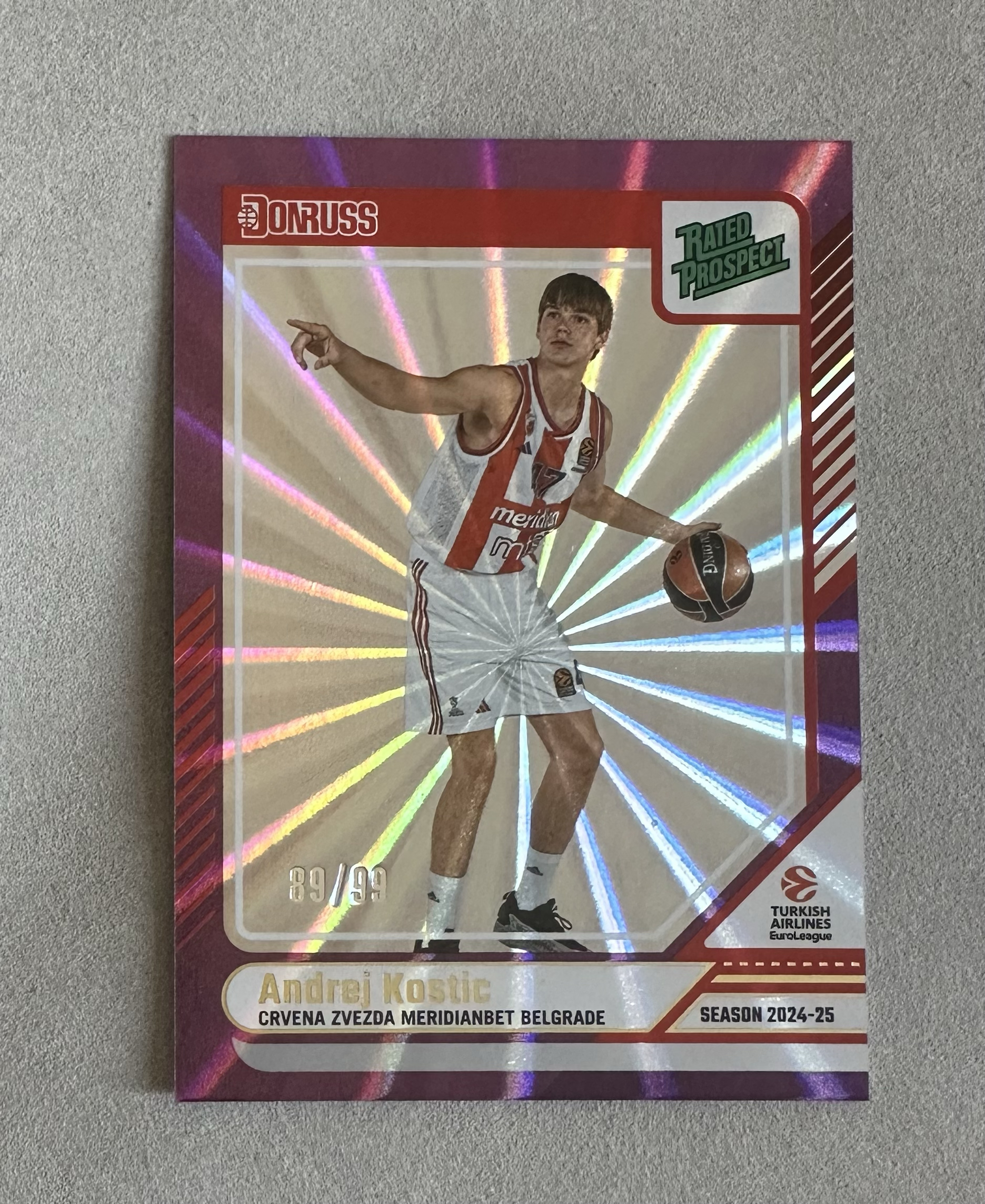 2025 Panini DONRUSS EUROLEAGUE ANDREJ KOSTIC RC 安德烈 科斯蒂克 欧洲联赛 杜蕾斯 新秀99编折射 卡量稀少(浩哥12)