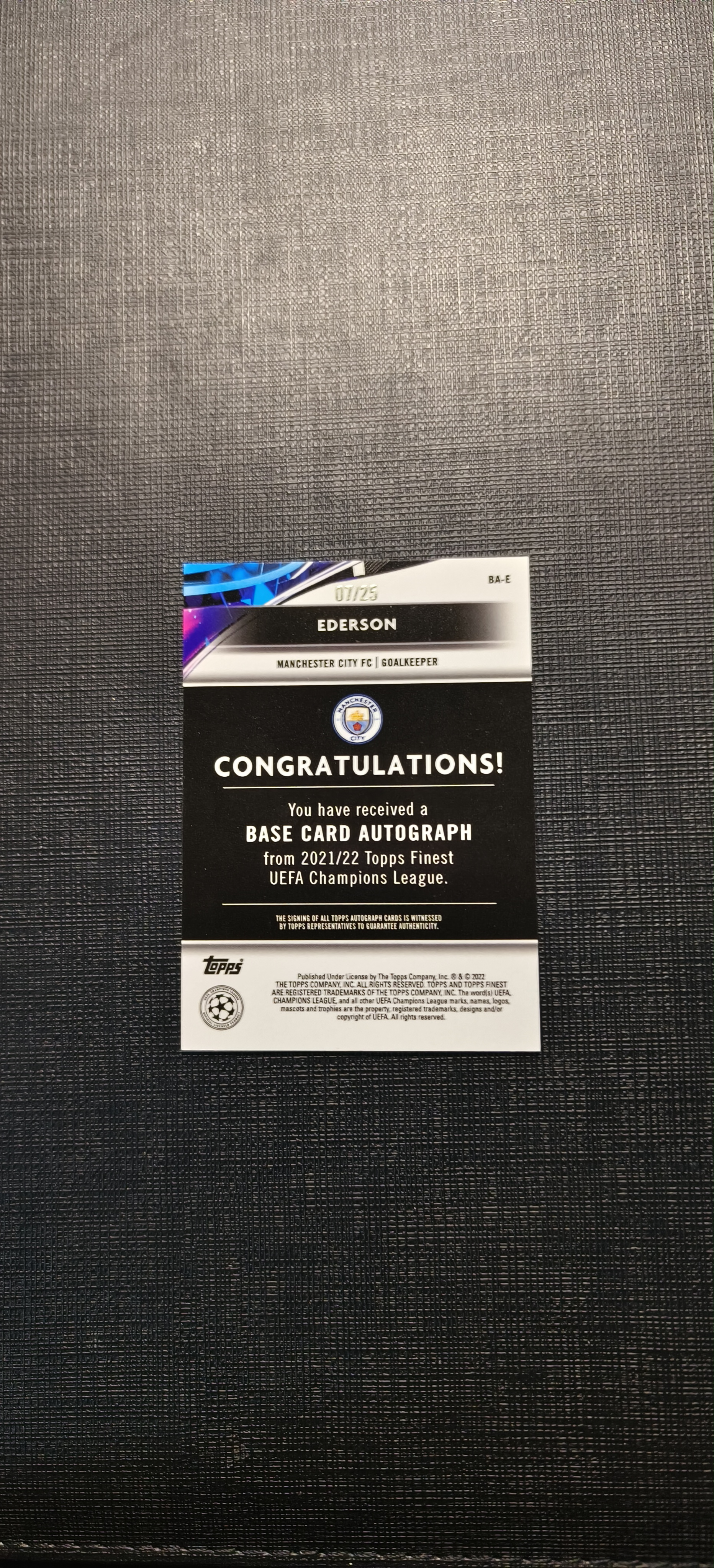 2023 Topps Finest Ederson 2022 Topps Finest Ederson 欧冠 欧战 埃德森 25编 橙波纹折 签字